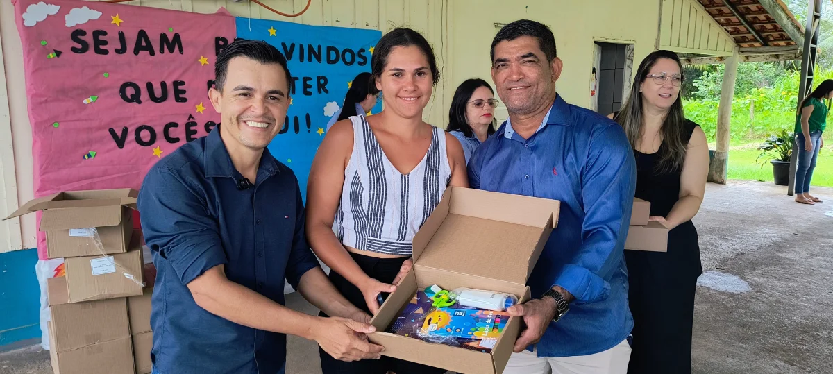A prefeitura do município de Chupinguaia, através da gestão do Prefeito Dr. Wesley Araújo (PP), e de seu vice-prefeito Eliezer Paraíso (PSD), junto a Secretaria Municipal de Educação – Semed; e a gestora da pasta Maria Cândida, realizou nesta quinta-feira 25 de fevereiro de 2026, a entrega gratuita de Kits escolares para todos os alunos da rede municipal.