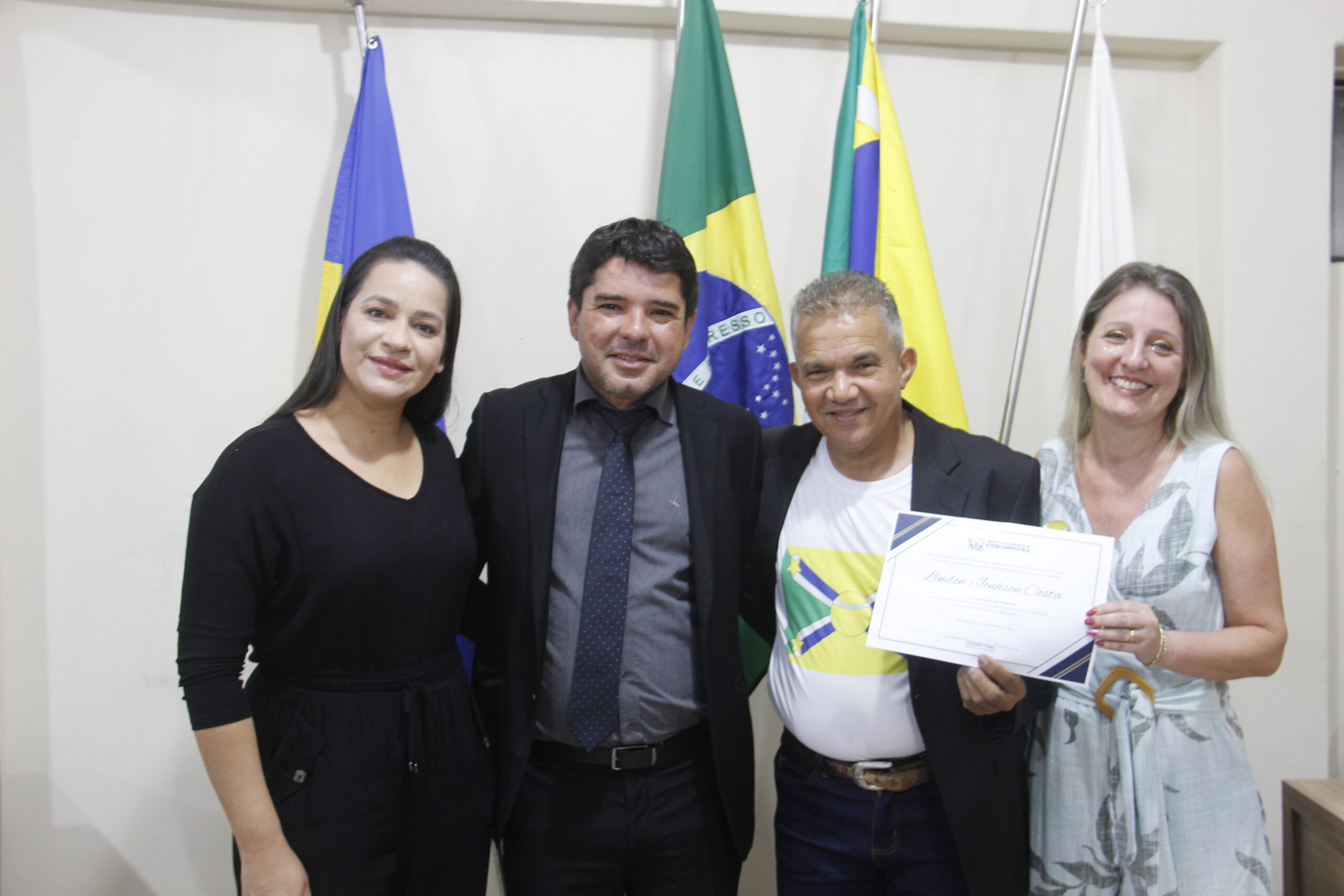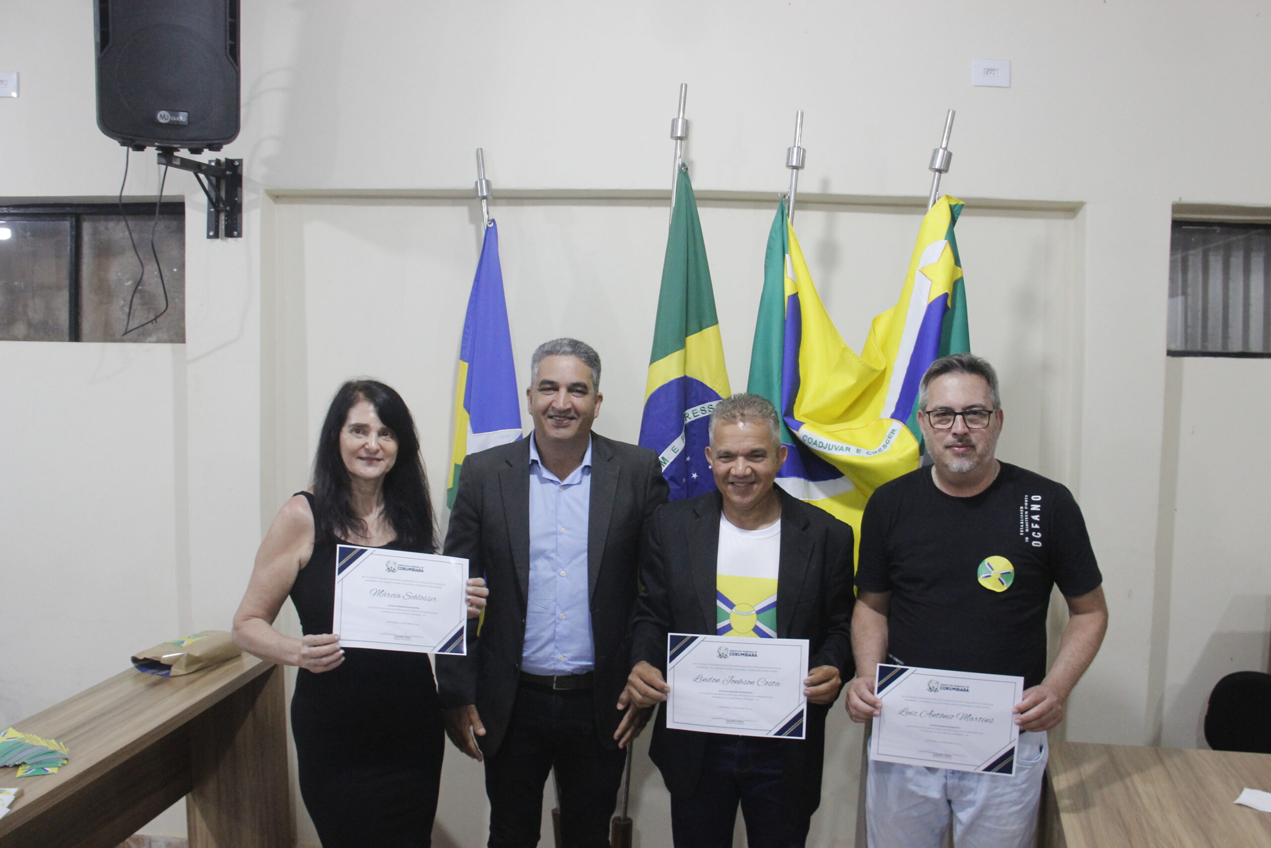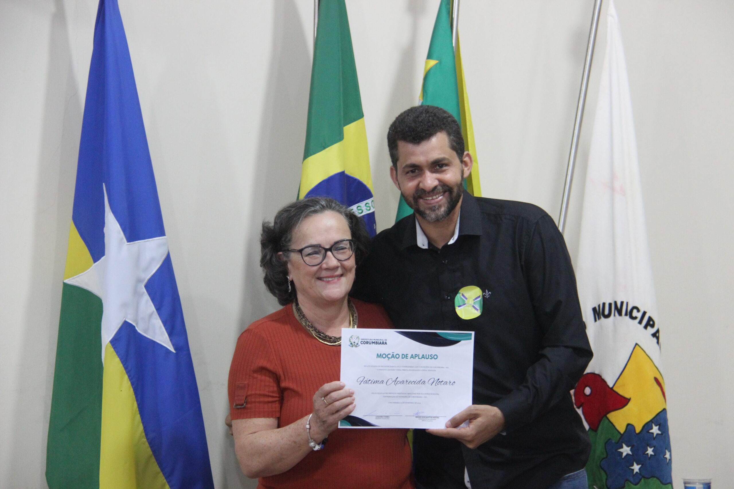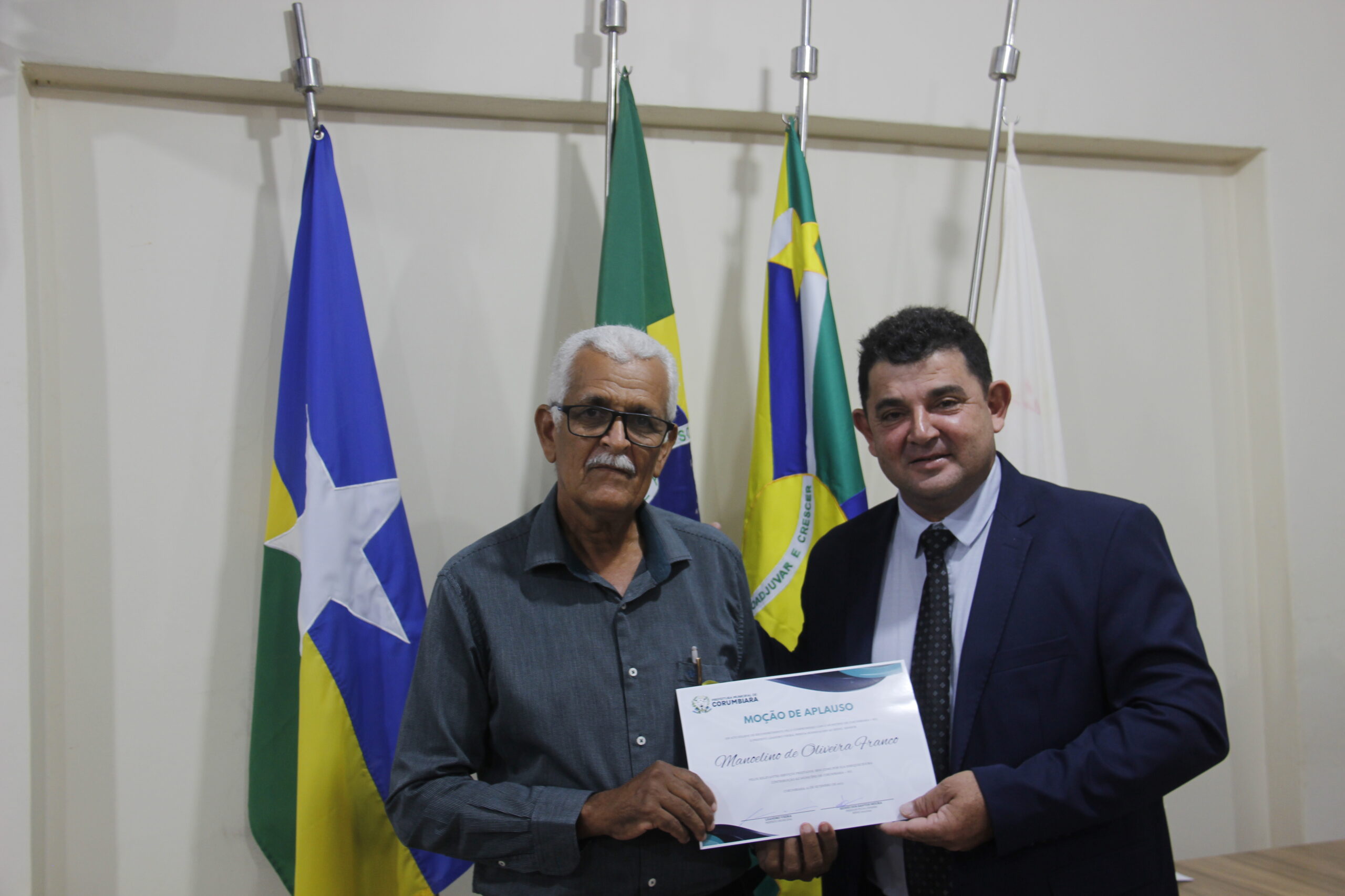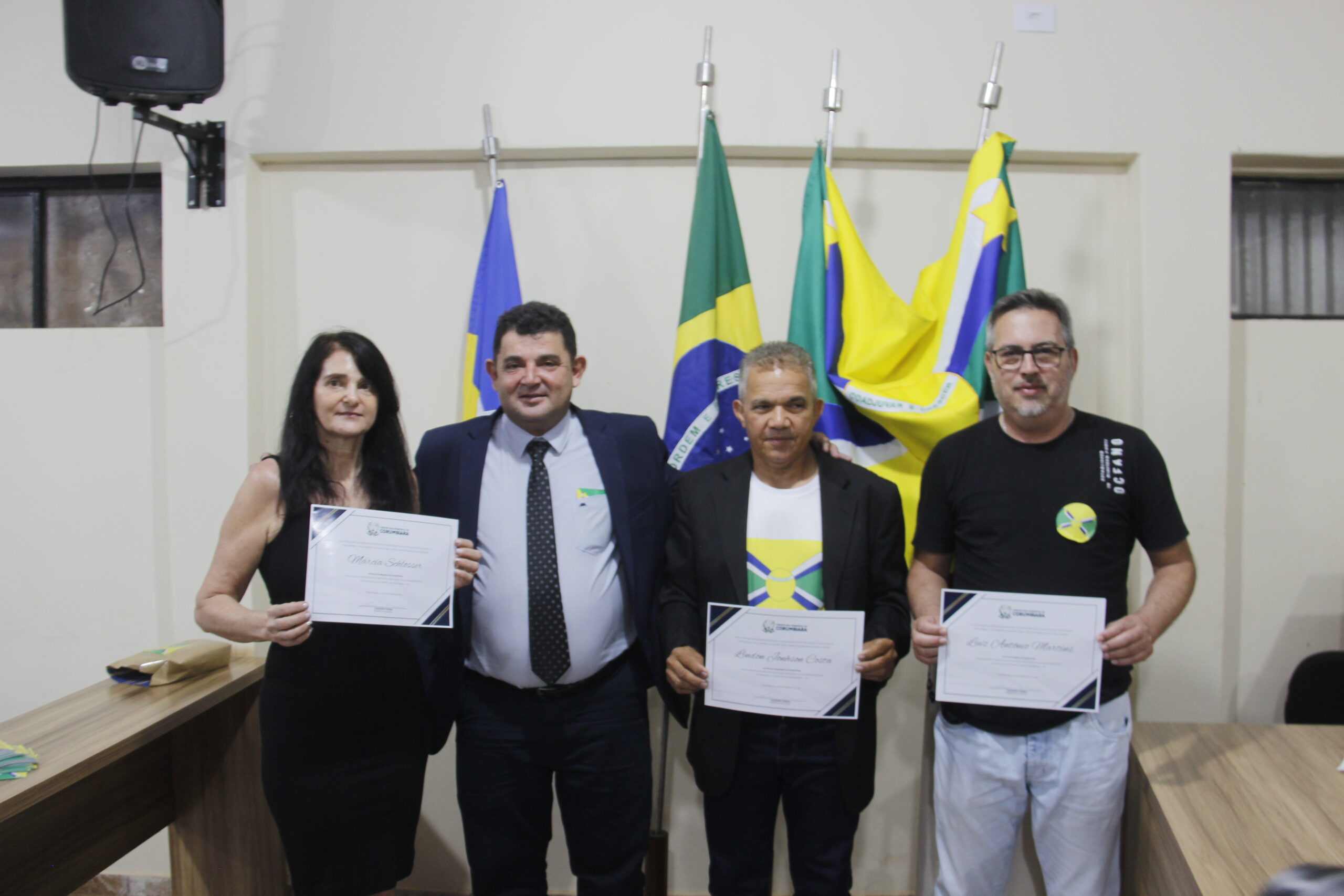 Uma noite de reconhecimentos, comemorações e homenagens de moção de aplauso. Assim aconteceu a Sessão Solene nesta sexta-feira (01/09), na Câmara Municipal de Corumbiara, com a homenagens de pioneiros da cidade, como Manoelino de Oliveira Franco, Bento Oliveira Santos e a Senhora Cleonice Silva Amorim, autor do Brasão, Marcia Shlosser, autor da Bandeira, Lindon Jonhson Costa, autor do Hino, Lui Antônio Martins, vanguardas da Educação Professor Ajaj Alabi, e Professora Fátima Aparecida Notaro, que se destacaram na sociedade em prol do desenvolvimento e crescimento do município.