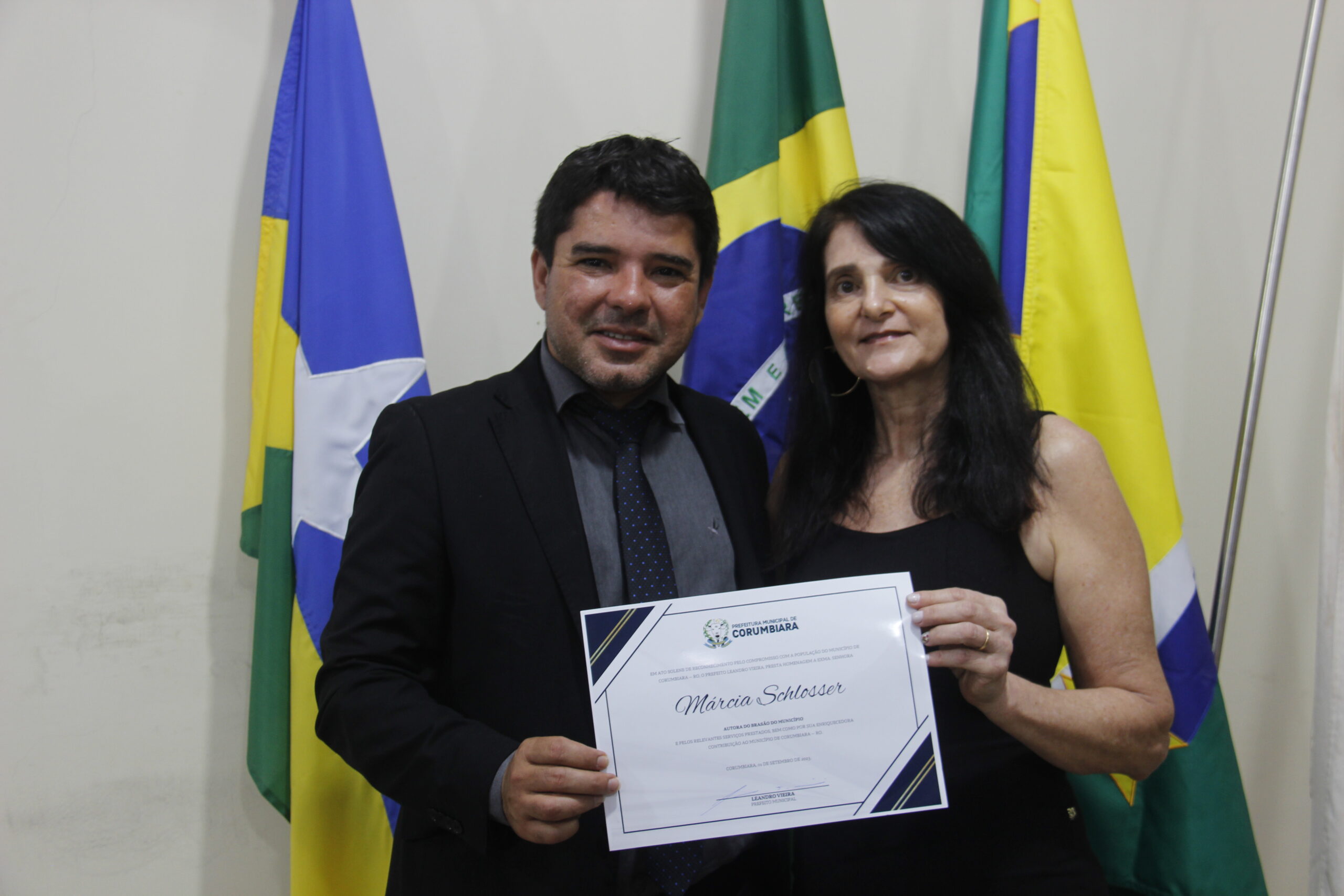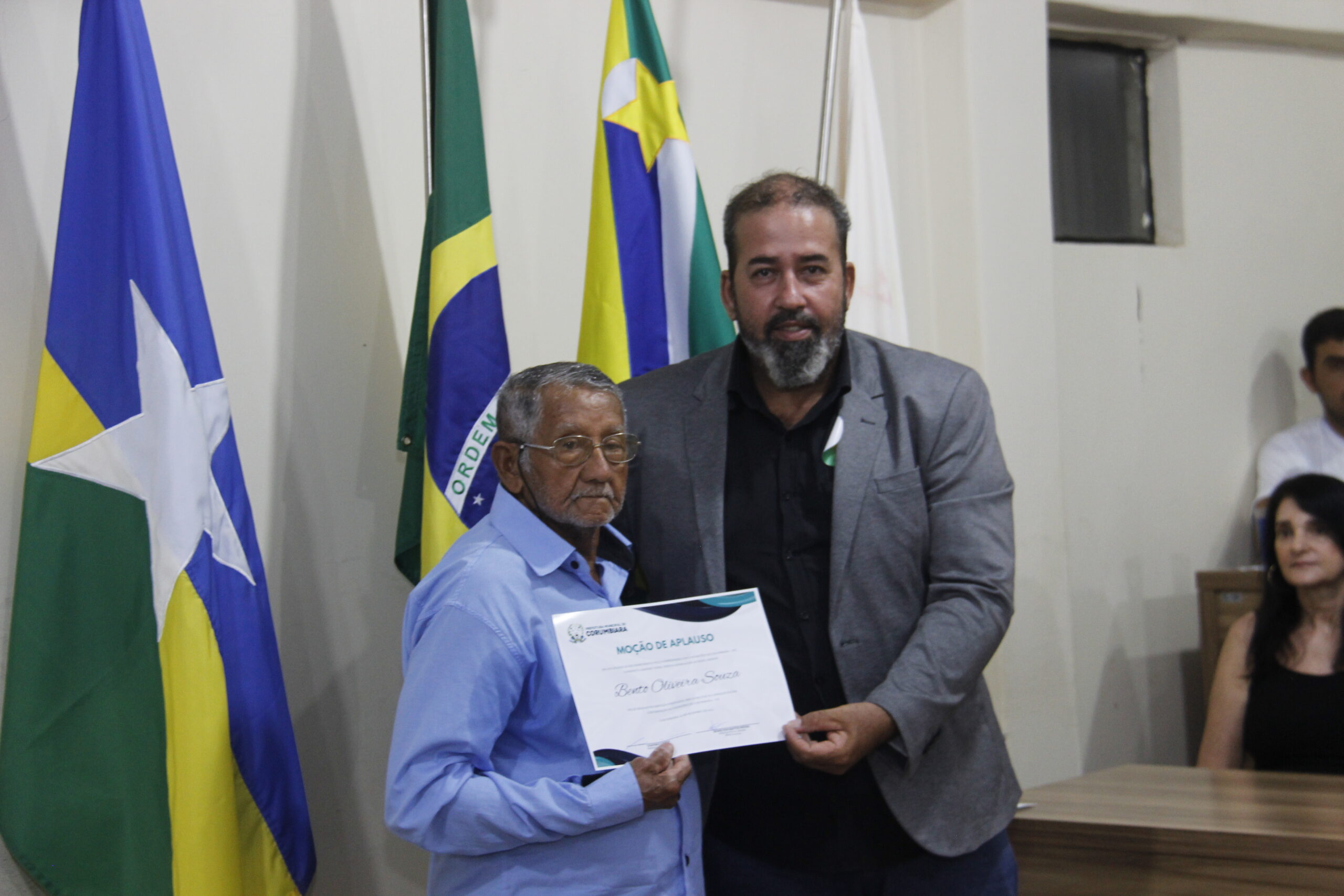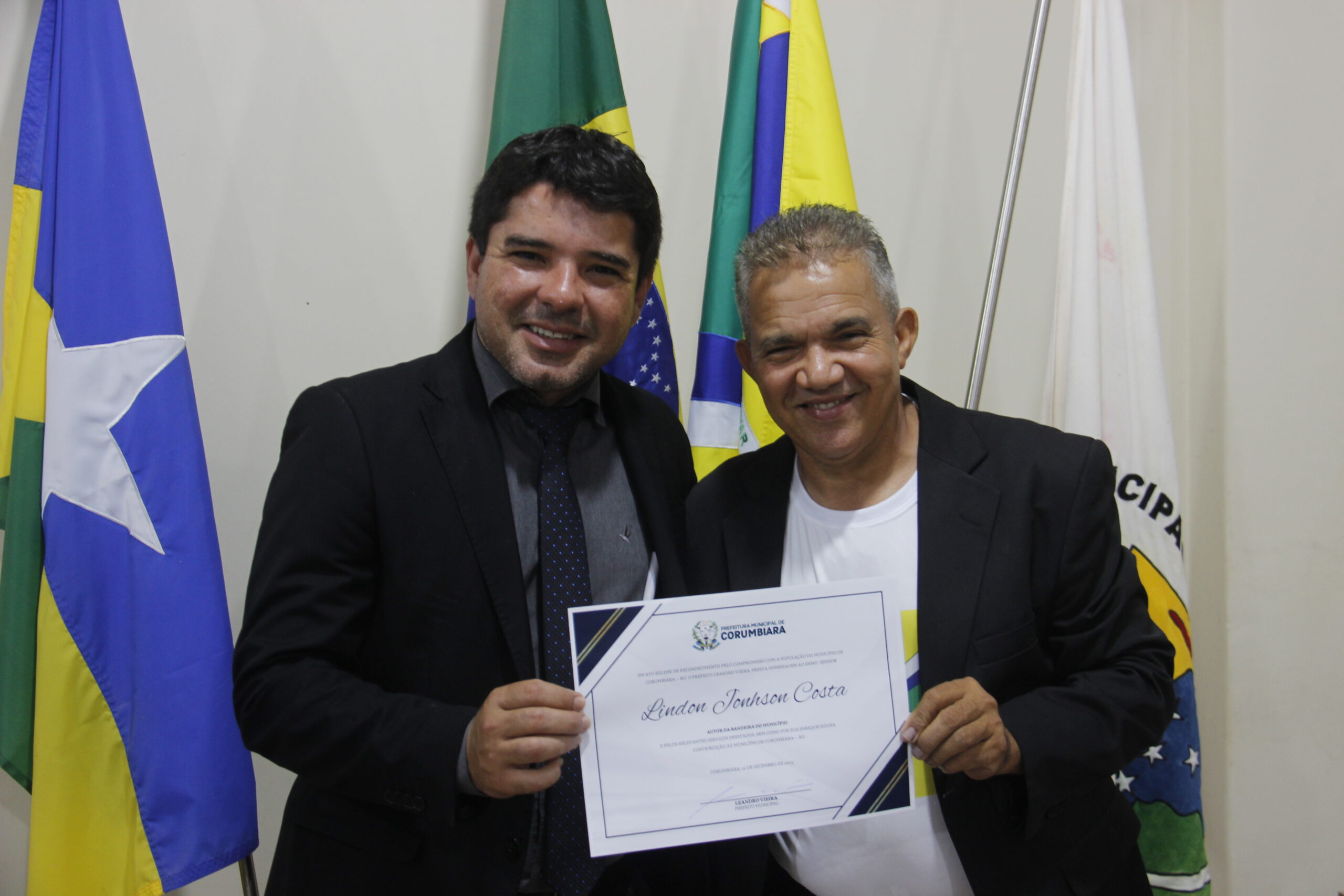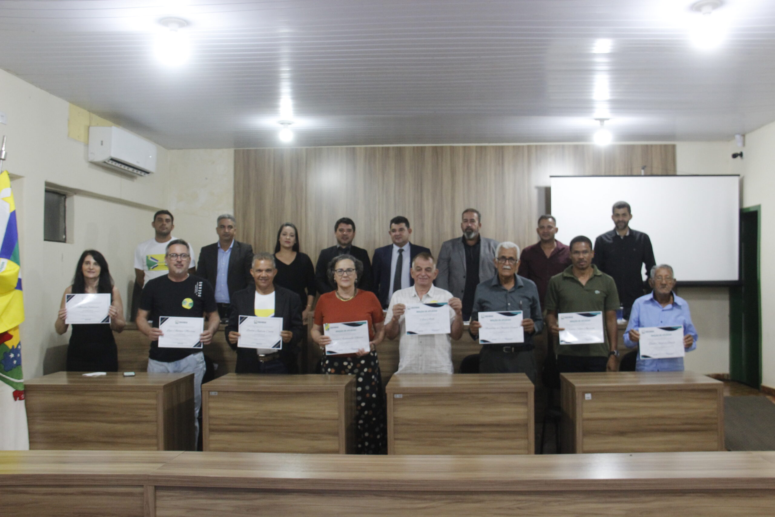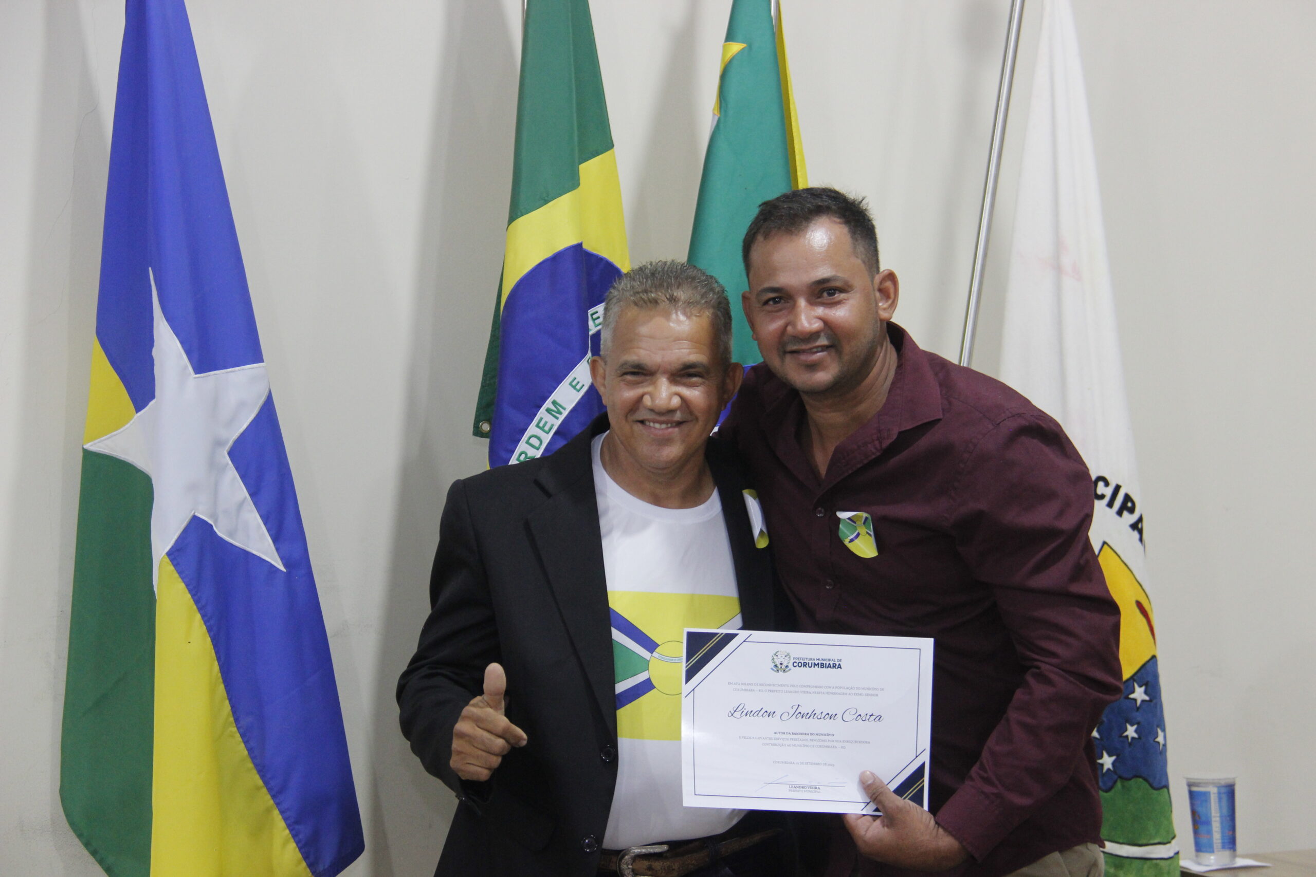 Uma noite de reconhecimentos, comemorações e homenagens de moção de aplauso. Assim aconteceu a Sessão Solene nesta sexta-feira (01/09), na Câmara Municipal de Corumbiara, com a homenagens de pioneiros da cidade, como Manoelino de Oliveira Franco, Bento Oliveira Santos e a Senhora Cleonice Silva Amorim, autor do Brasão, Marcia Shlosser, autor da Bandeira, Lindon Jonhson Costa, autor do Hino, Lui Antônio Martins, vanguardas da Educação Professor Ajaj Alabi, e Professora Fátima Aparecida Notaro, que se destacaram na sociedade em prol do desenvolvimento e crescimento do município.