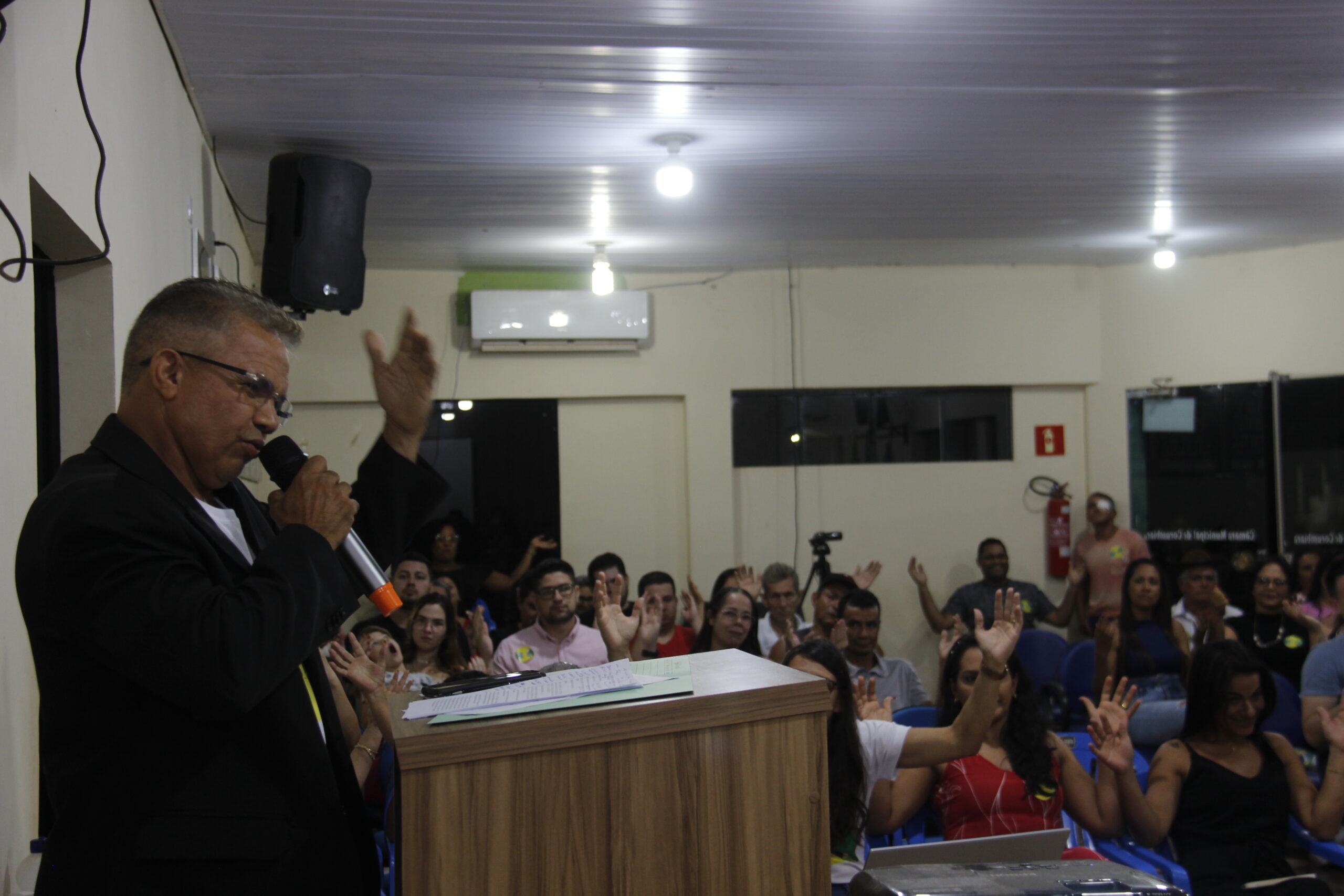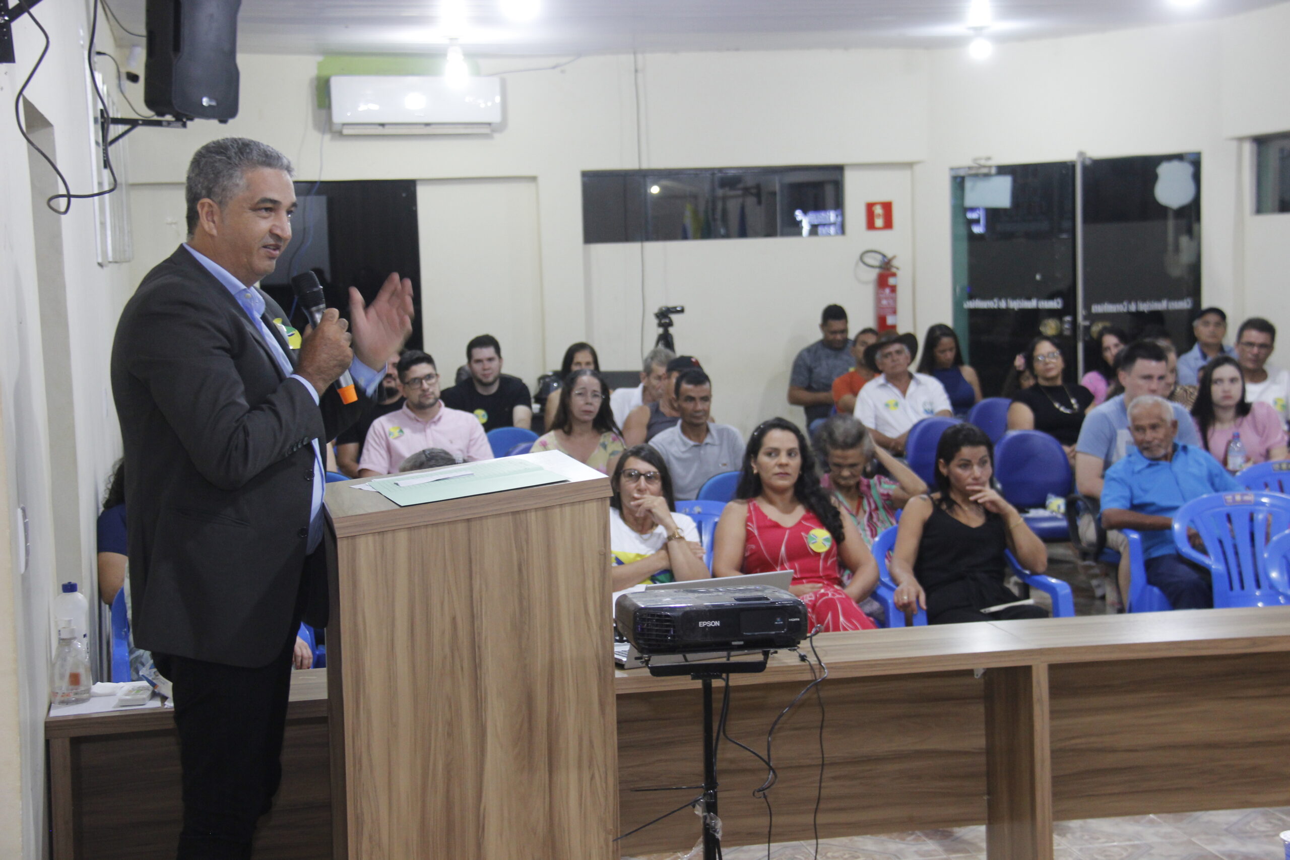 A mesa das autoridades foi composta pelo Presidente da Câmara, vereador Sidnei dos Santos Moura, conhecido como “Nei Moura”, Prefeito do Município Leandro Teixeira Vieira, Primeira dama e Secretária Municipal de Assistência Social, Carla Poquiviqui da Silva, vice-presidente Gerson Gonsalves Cardoso, conhecido como “Tuca”, primeiro secretário Narcelio Crisostomo do Nascimento, segundo secretário Valdinei da Costa Espindola, conhecido como “Caverianha” e vereador Solon Pereira de Souza.