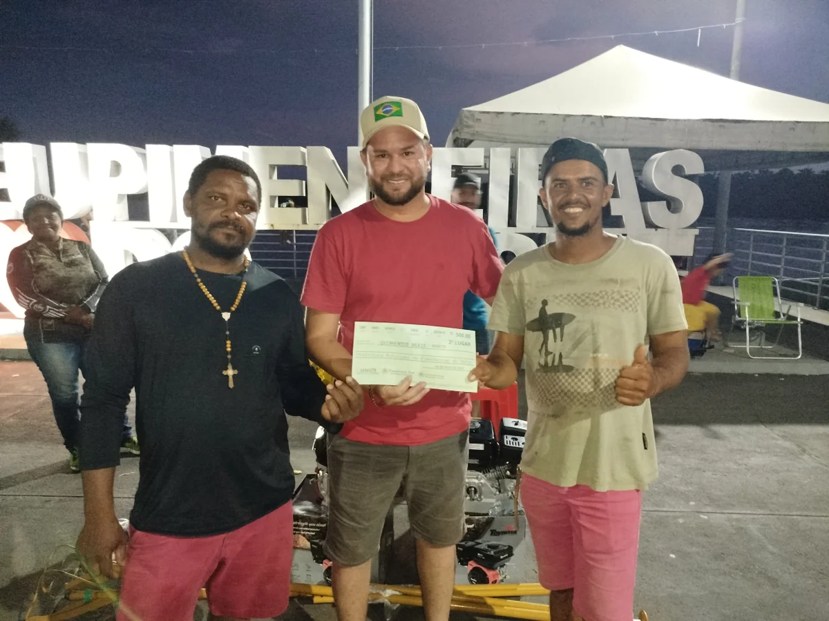 Premiação em Rabeta Categoria Única: primeiro lugar R$ 1.000,00, segundo lugar R$ 500,00, terceiro lugar R$ 300,00.