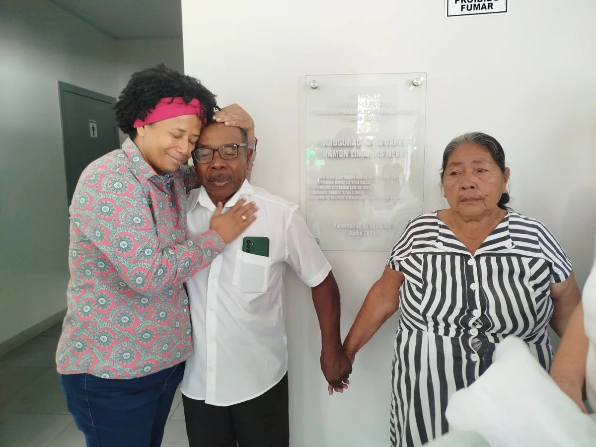 A prefeita do município de Pimenteiras do Oeste/RO; Valéria Aparecida Marcelino Garcia (UB), e seu vice-prefeito Rafael da Silva Souza (MDB), acompanhada da deputada federal Silvia Cristina (PP), secretários municipais, vereadores e vereadoras, lideranças comunitárias e população em geral, também participaram da inauguração os pais, esposa e filhos do ex-vereador Ramon, na manhã deste sábado 09 de agosto de 2025.