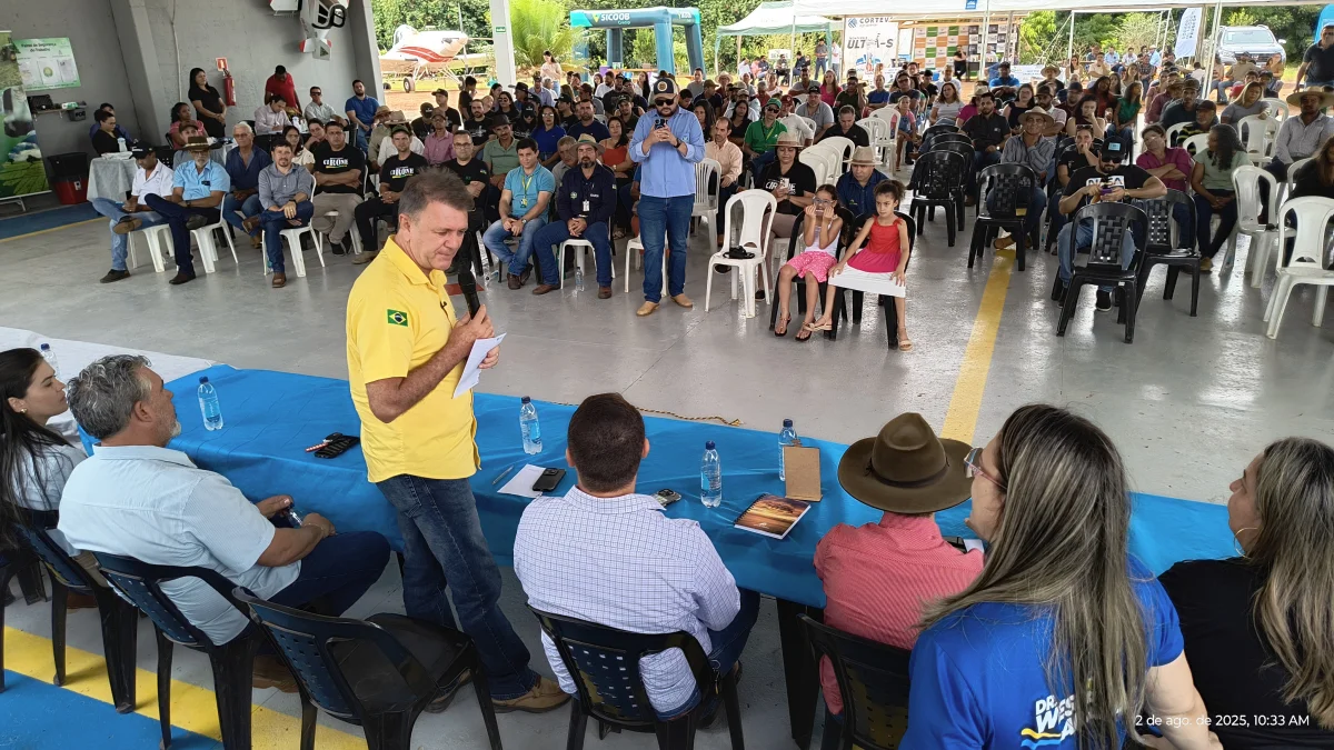 O encontro foi realizado no local Cone Sul Aero Agrícola, na linha 115, lote 291ª1, setor 10, zona rural de Chupinguaia, e apresentou palestras técnicas e exposição de produtos e políticas públicas voltadas ao agronegócio.