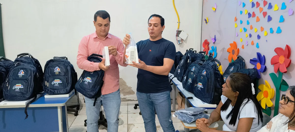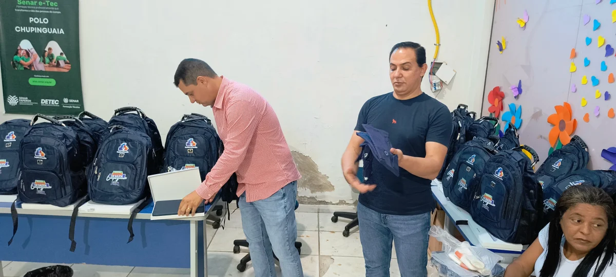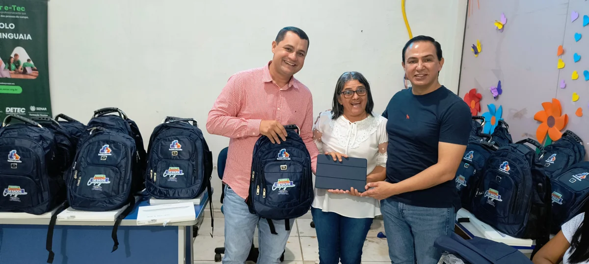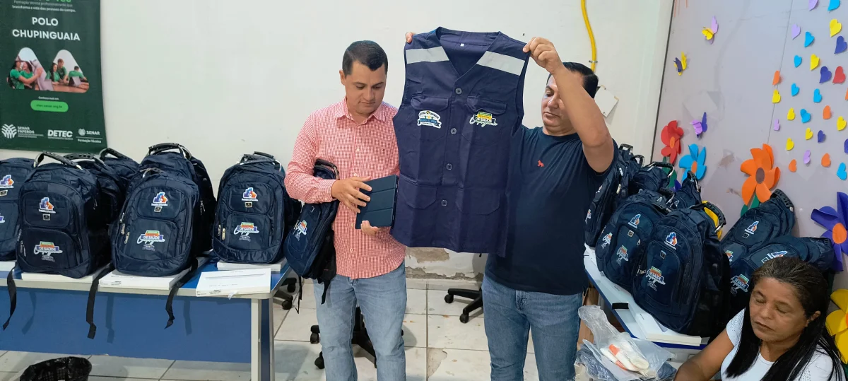 Foram distribuídas mochilas, camisetas, coletes, protetor solar e tabletes, garantindo melhores condições para o desempenho das atividades diárias desses ´profissionais que atuam diretamente no cuidado com a população.