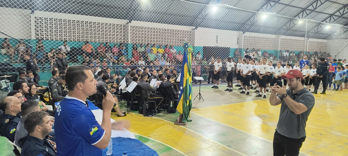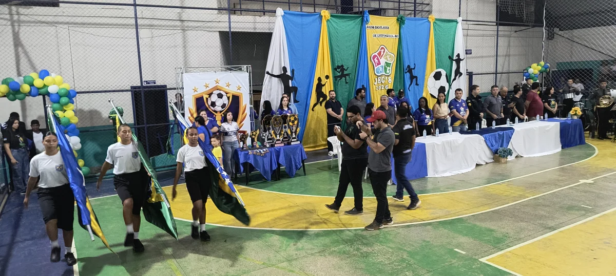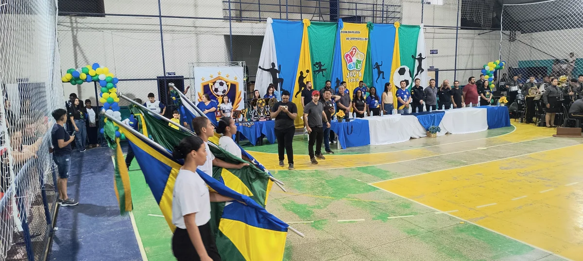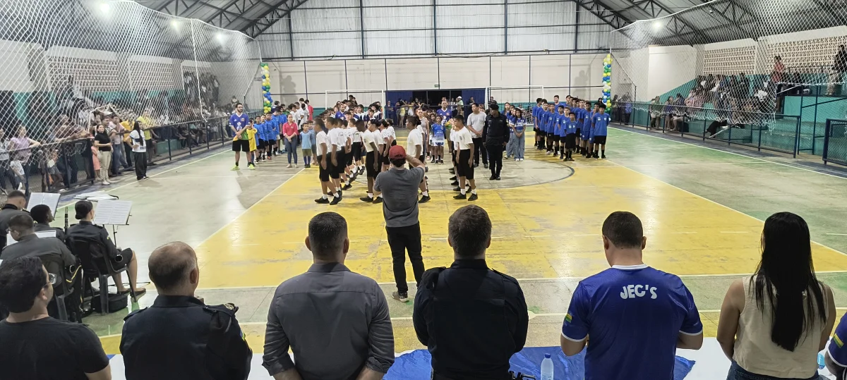 A cerimônia contou com a apresentação das delegações, Polícia Militar Mirim, Fanfarra Militar Mirim de Vilhena e com a apresentação da Associação de Pais e Amigos dos Excepcionais – APAE. Nesta fase dos jogos, que é municipal, os esportistas competem nas modalidades de futsal feminino, masculino, ping pong (ou tênis de mesas), atletismo, badminton e salto em distância, em busca da vaga na fase regional.
