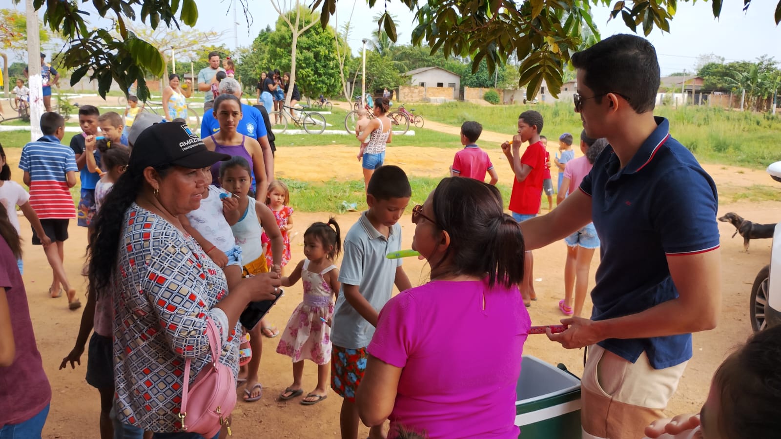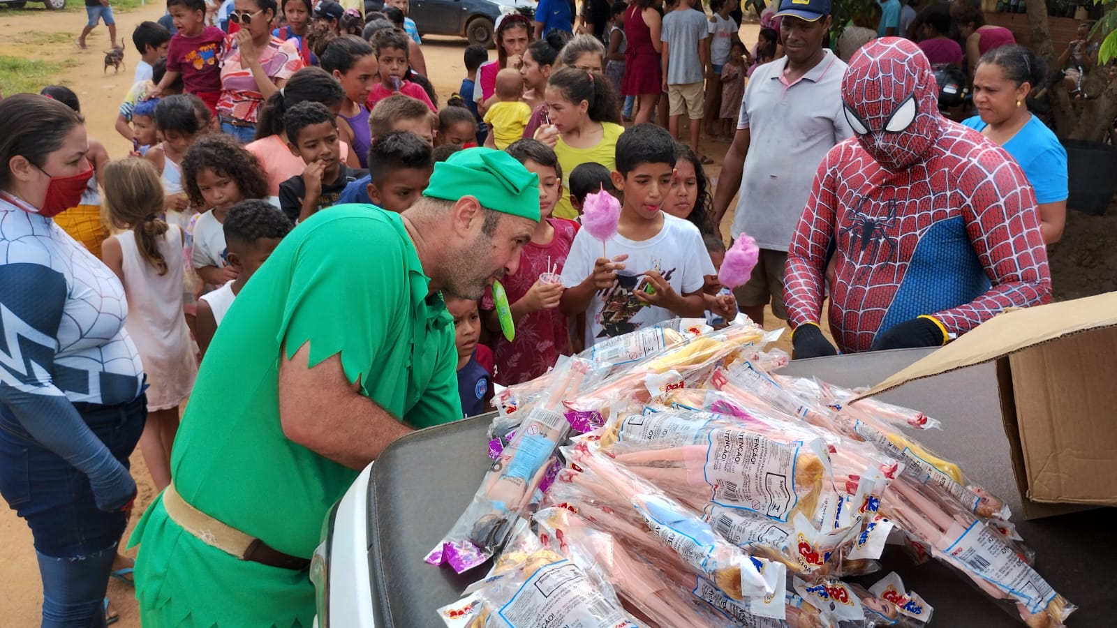 A ação da família Sordi Moreira, teve a entrega de brinquedos, algodão doce, refrigerantes e balas nos municípios de Cerejeiras, Cabixi e Pimenteiras