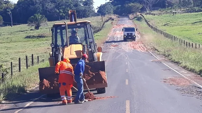 Processo disciplinar revela que servidor de Colorado do Oeste precisou ser advertido três vezes pelo chefe antes de o caso ser oficializado. Foto da Máquina do DER na estrada de Cabixi