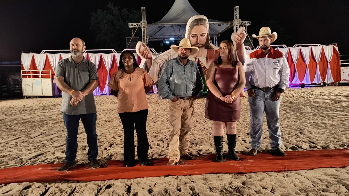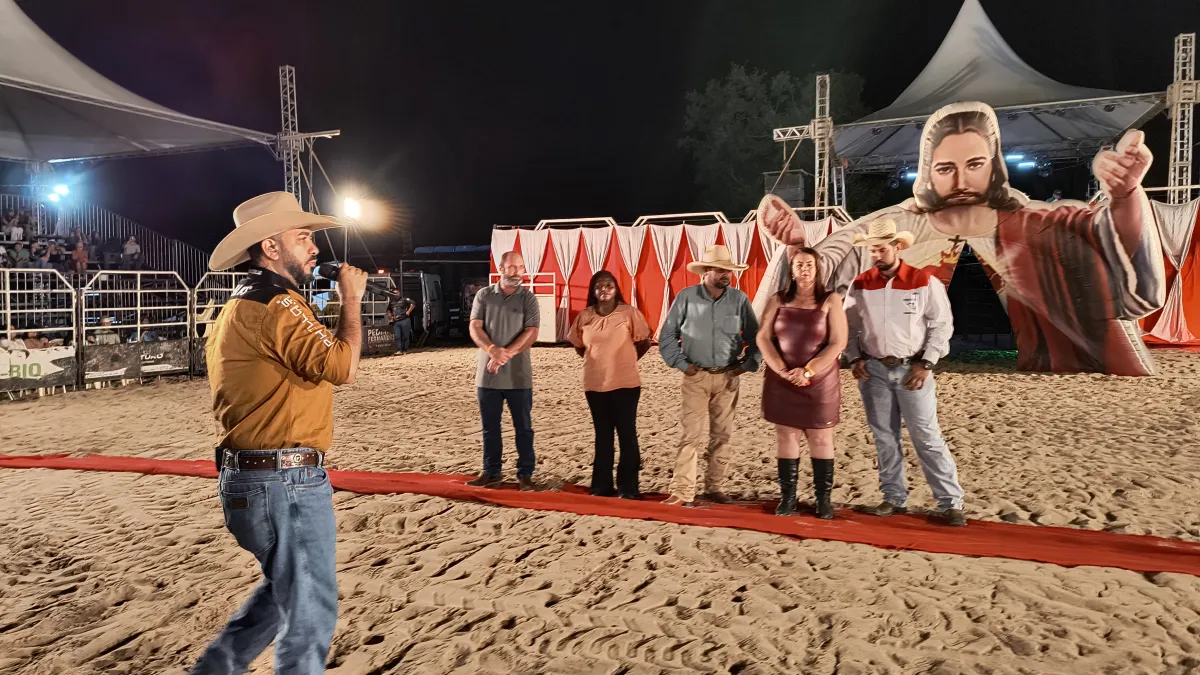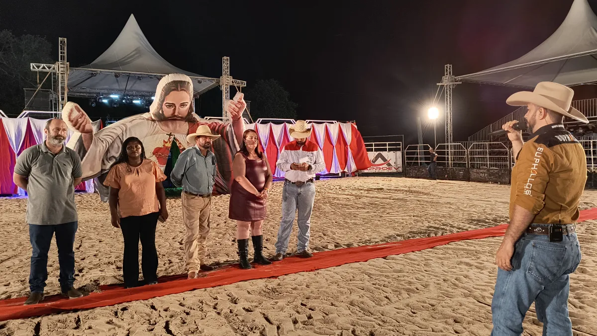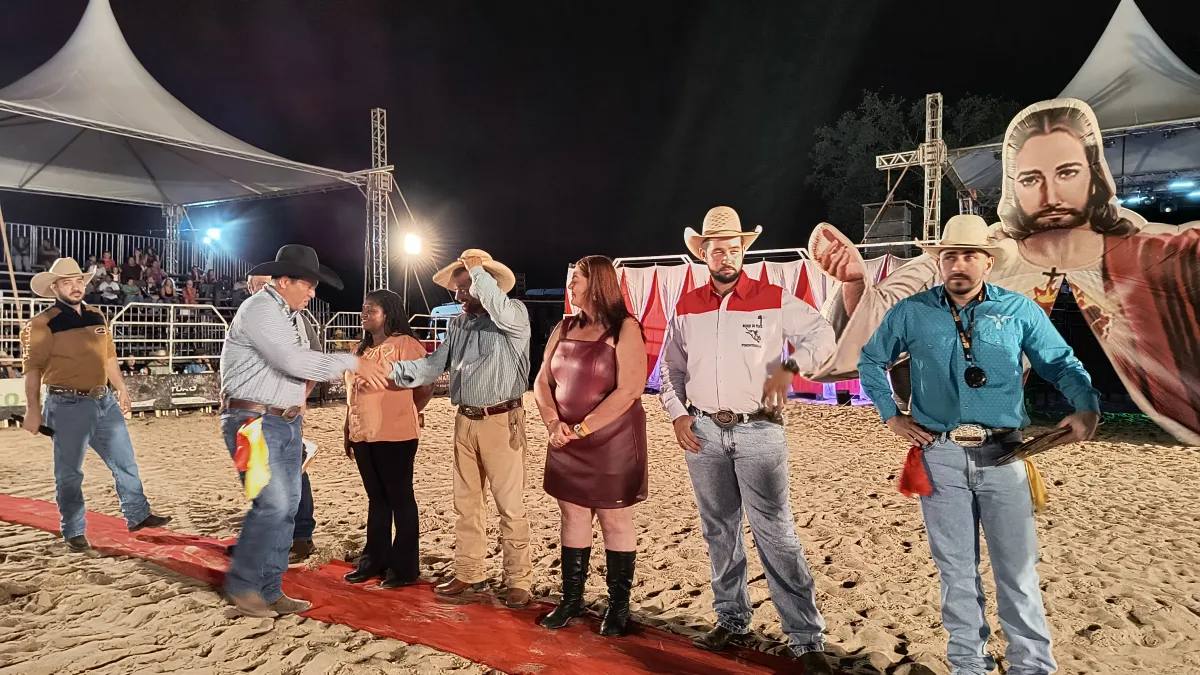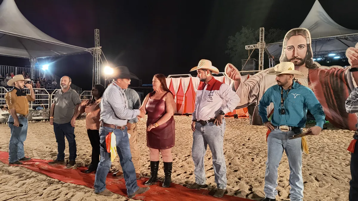 A cerimônia de abertura do Rodeio de Praia contou com a participação da prefeita Valéria Garcia (UB), de seu esposo Corim, do seu filho Bruno, Secretária de Turismo Municipal, Marinete e do chefe de gabinete Rodrigo Sordi Moreira.