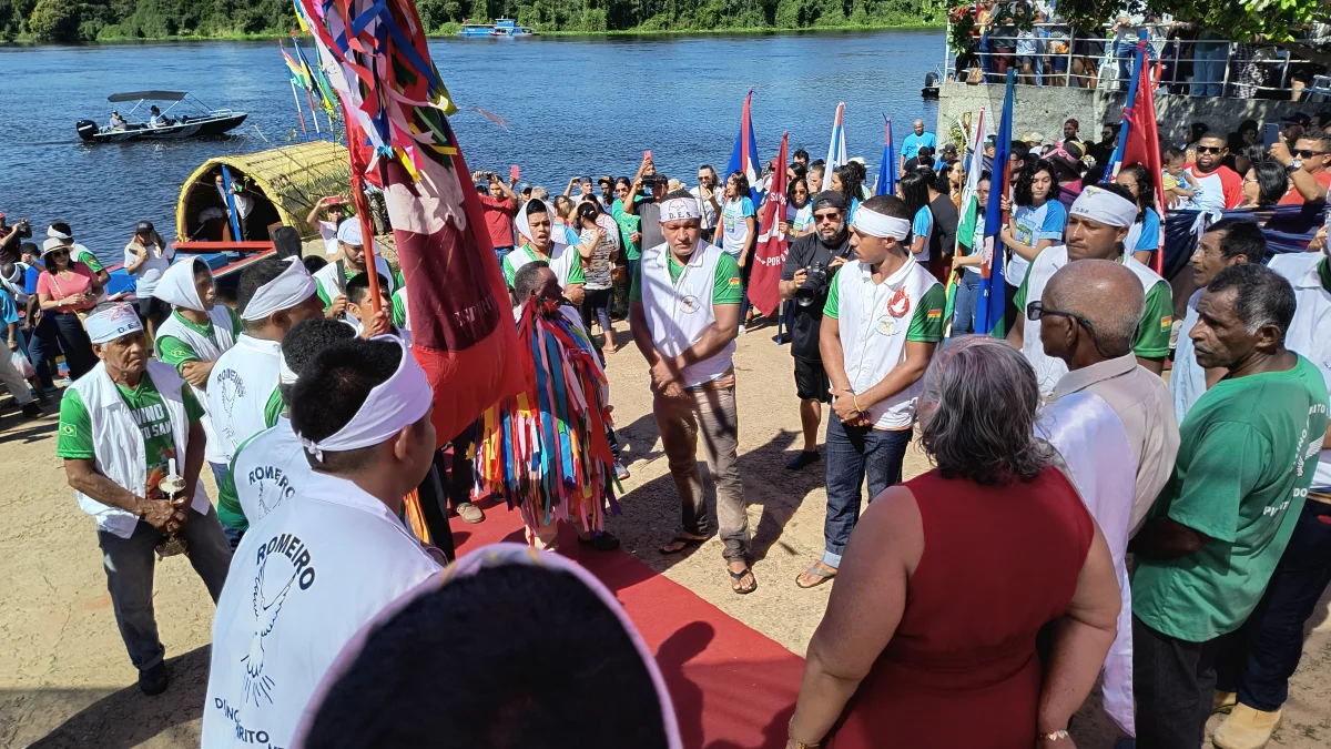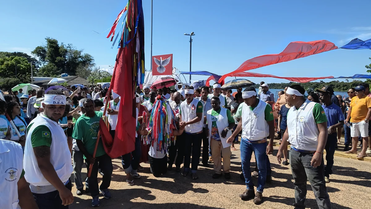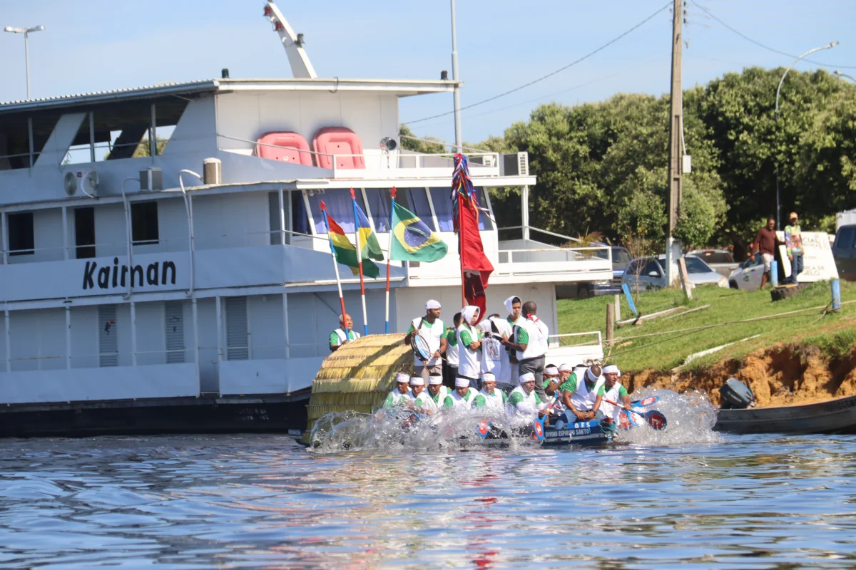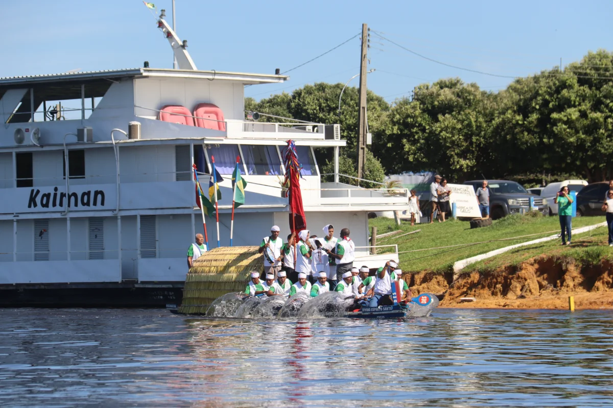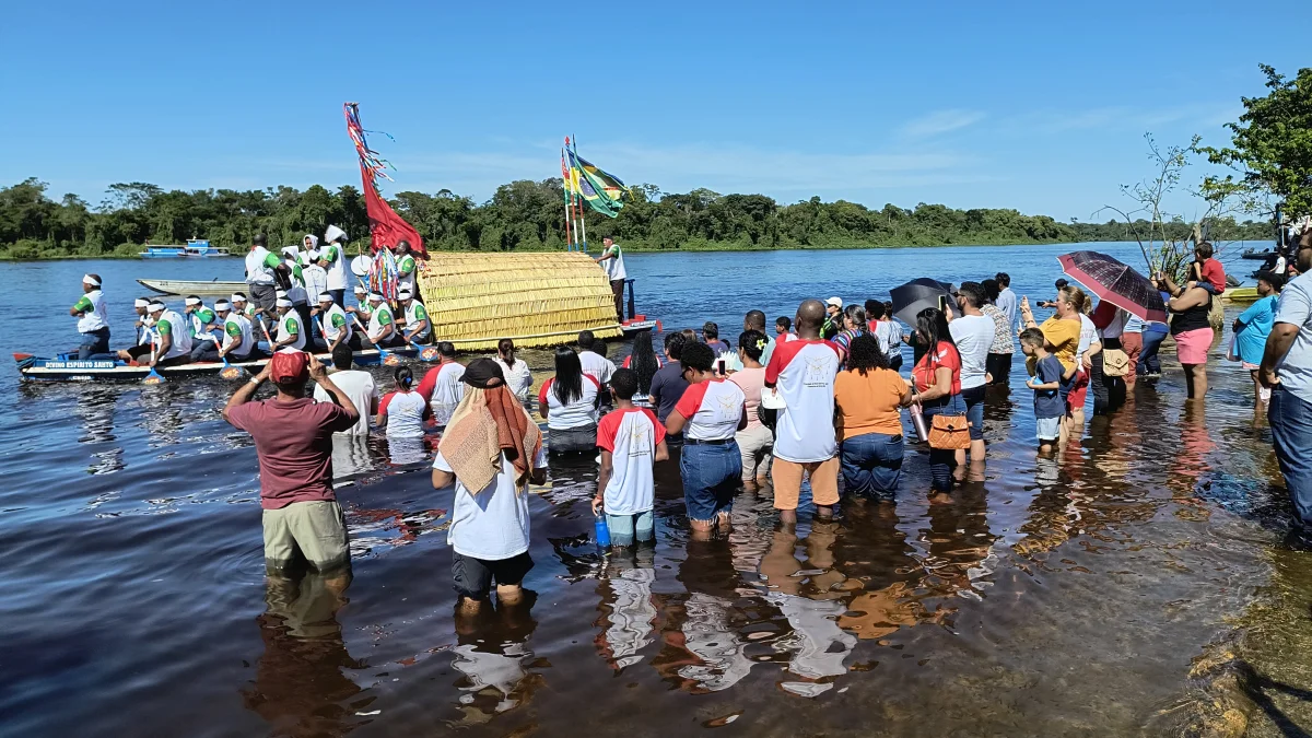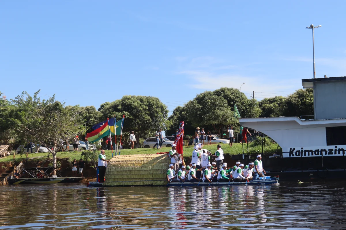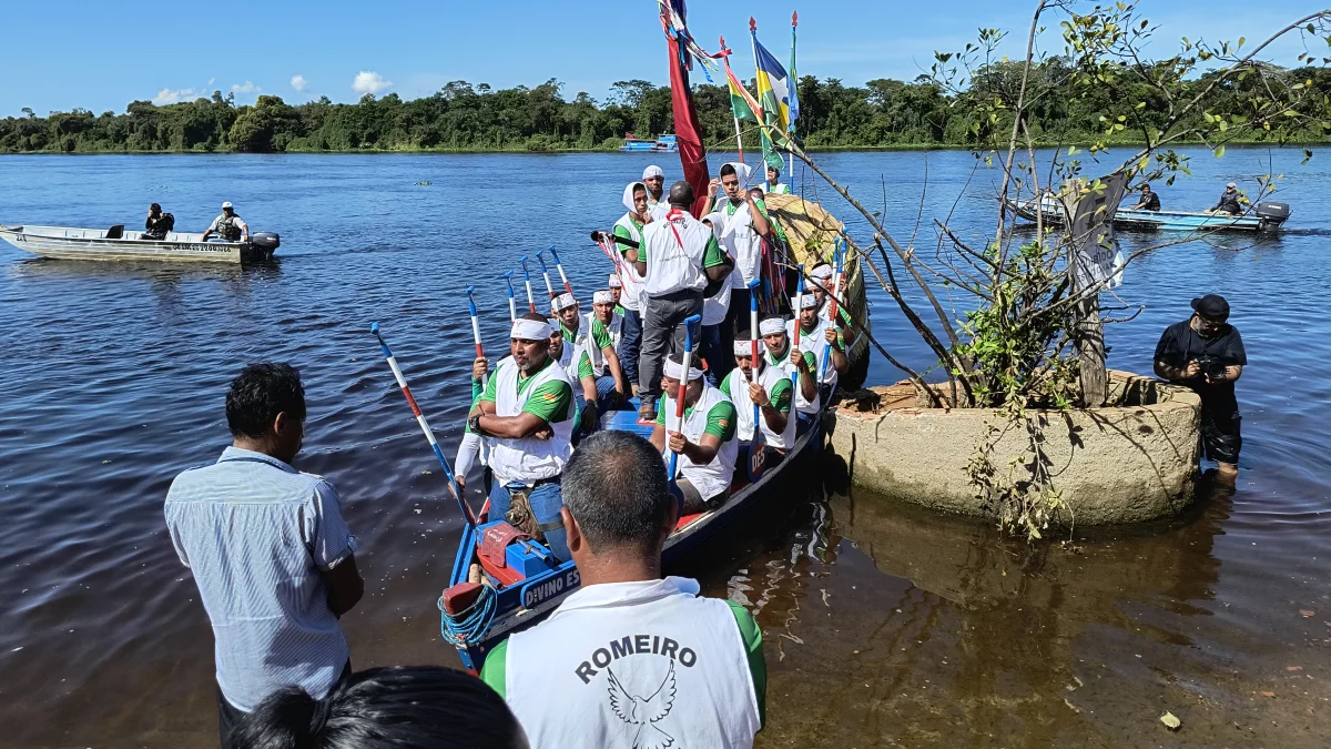 Aconteceu neste domingo 25 de maio, a chegada da Romaria e do Batelão do Divino Espírito Santo, do Vale do Guaporé, no município de Pimenteiras do Oeste/RO; São 45 dias de romarias por 37 comunidades tradicionais do Rio Guaporé, entre o Brasil e Bolívia até chegar a seu destino final que será na localidade de Cafetal na Bolívia que será uma grande festa nos dias 04,05,06, 07 e 08 de junho de 2025.
