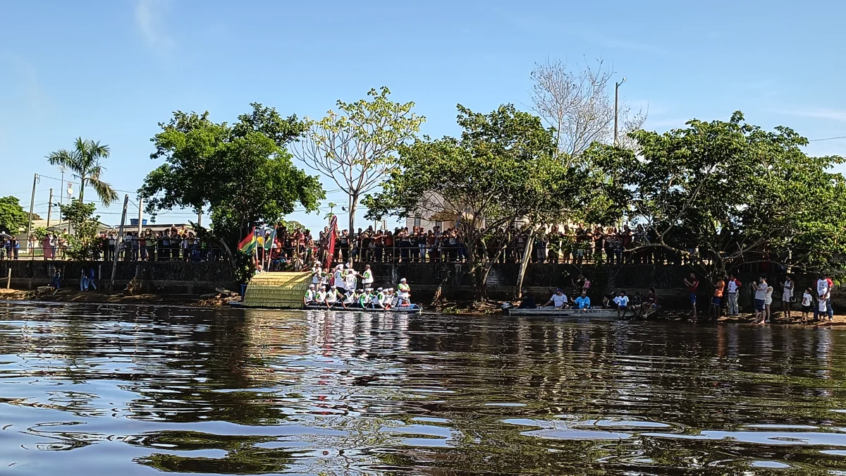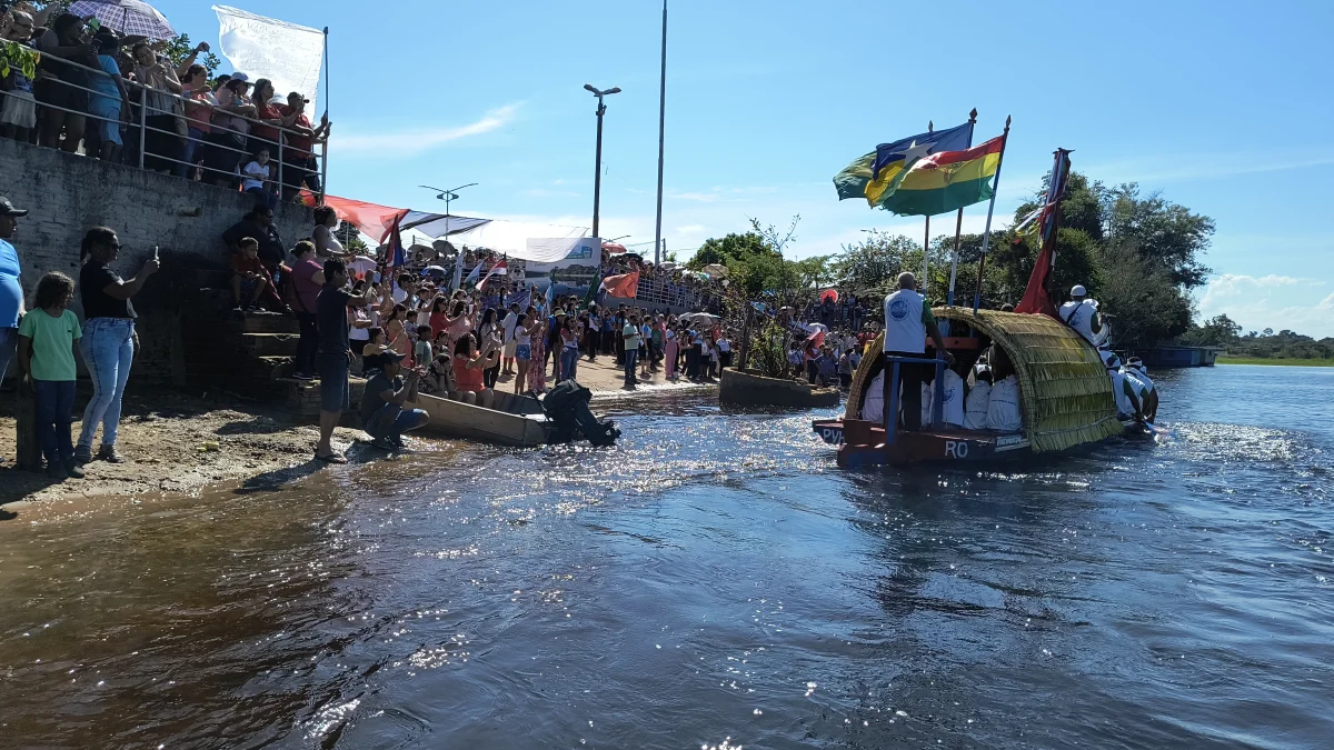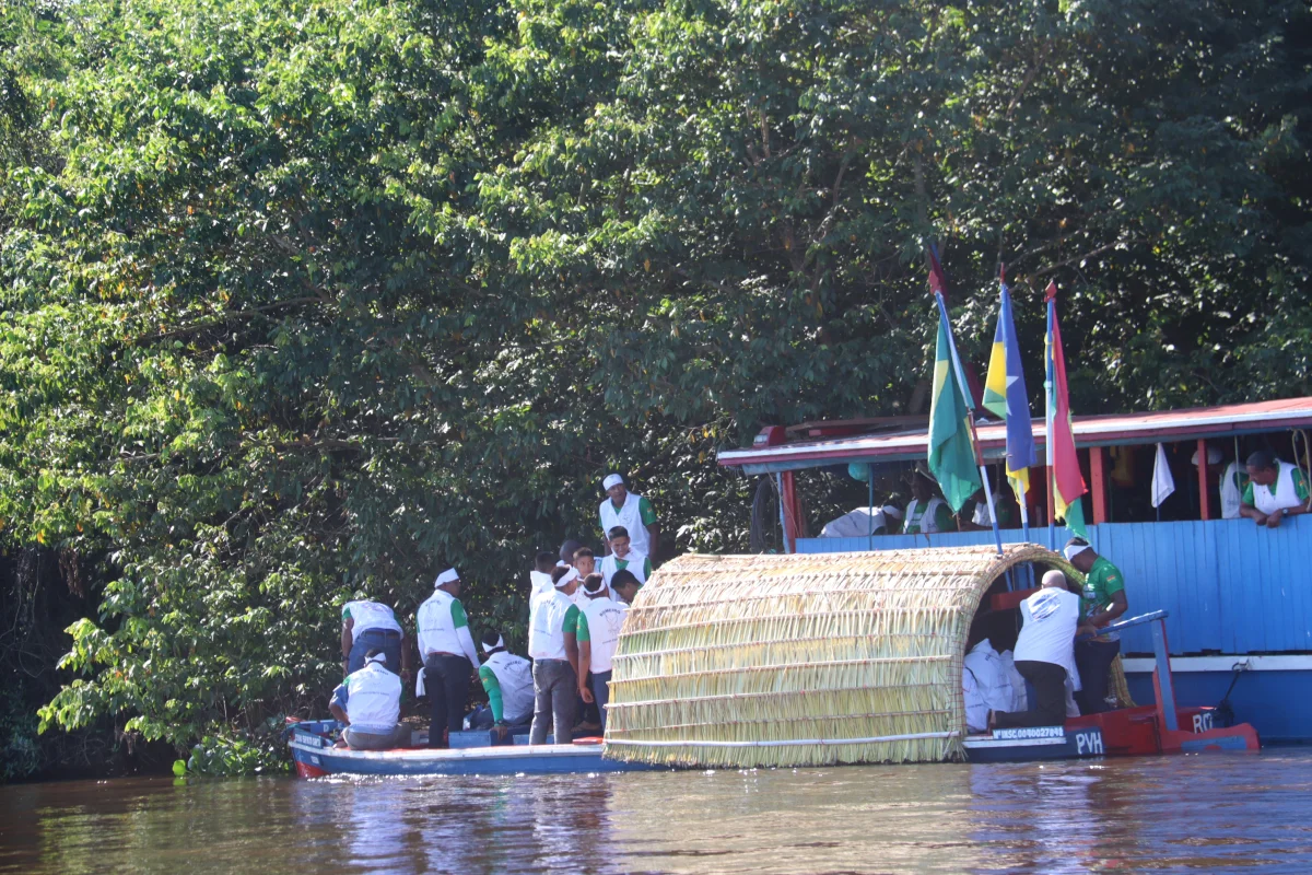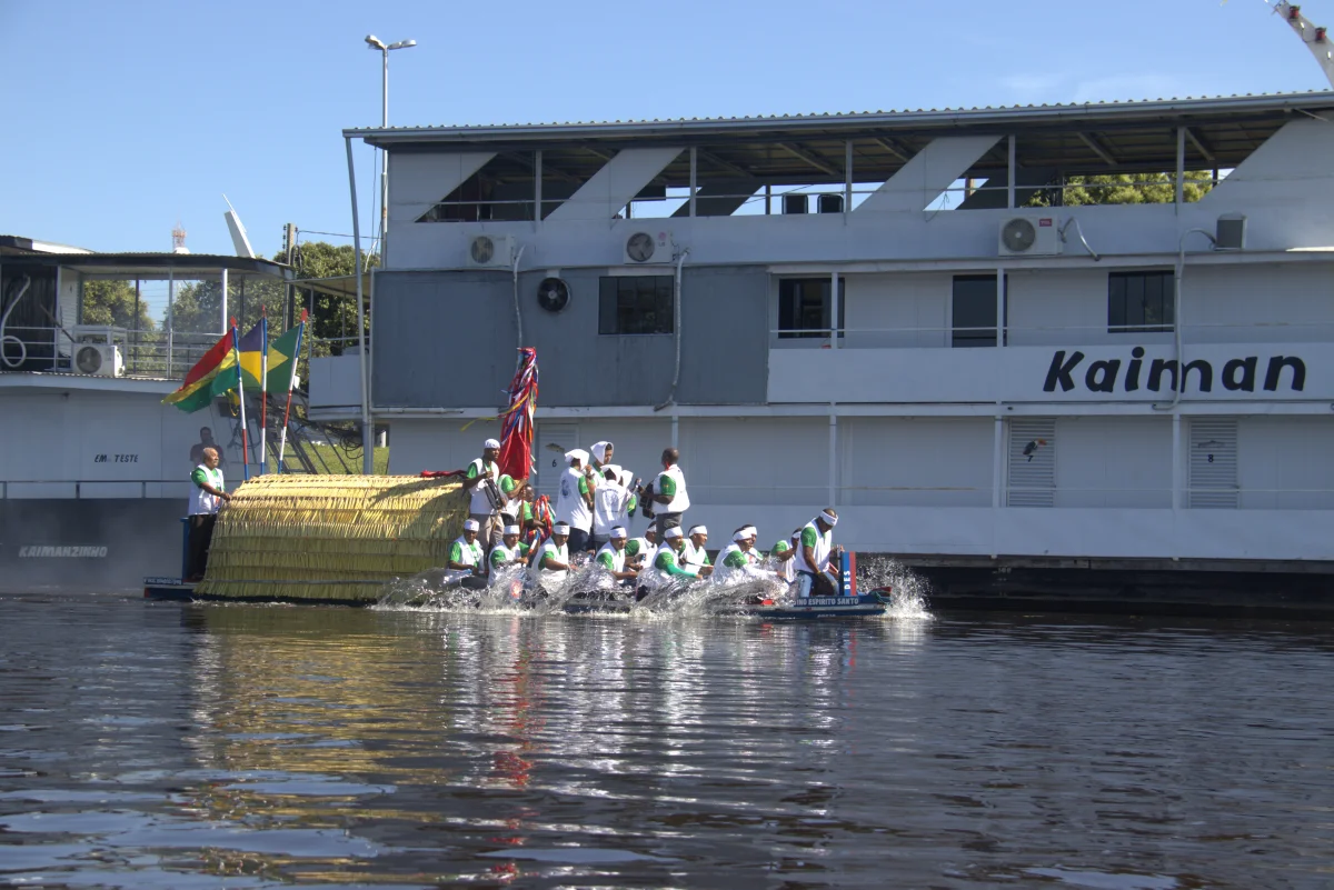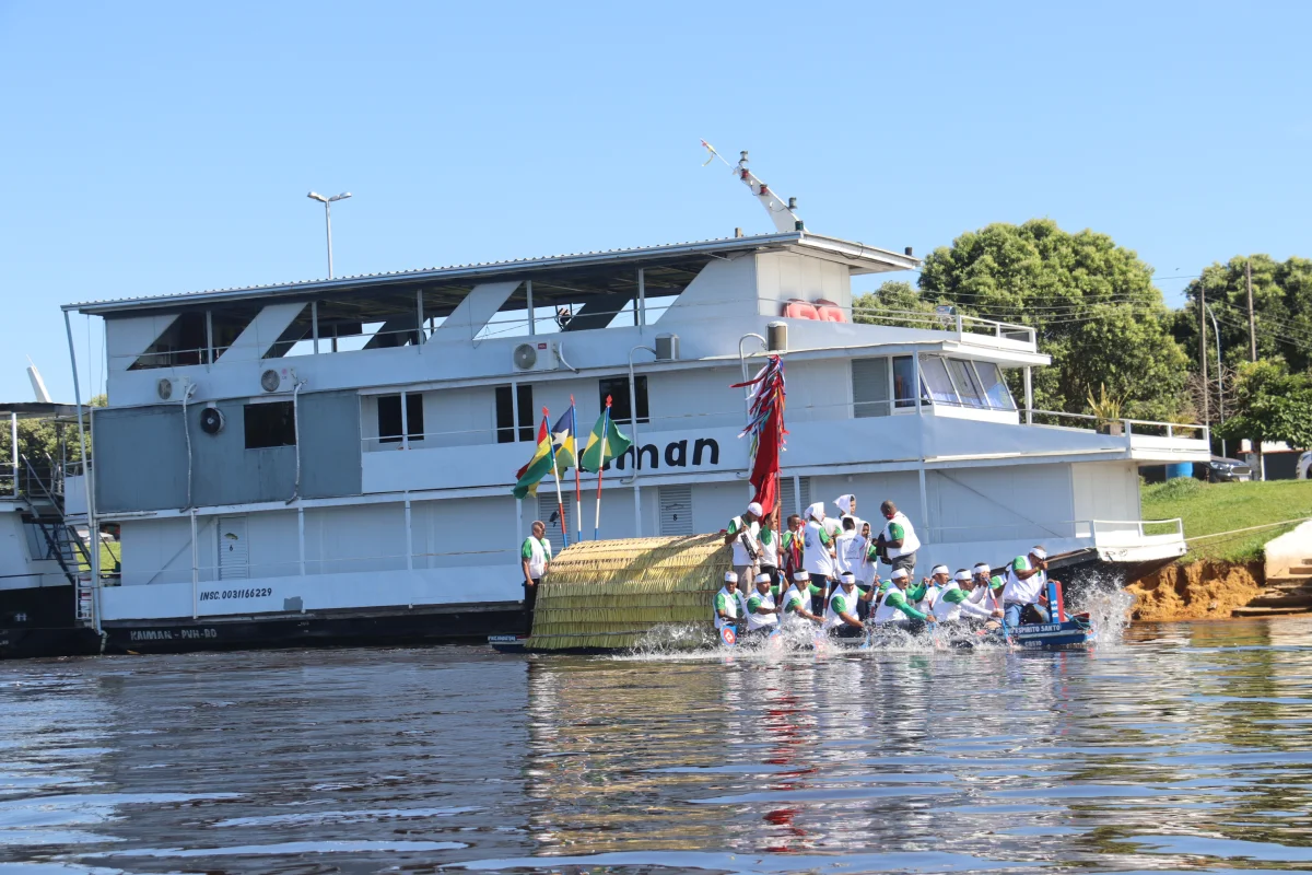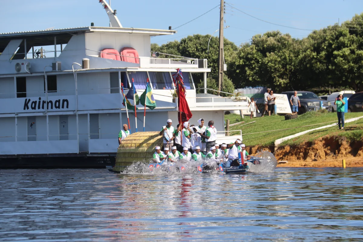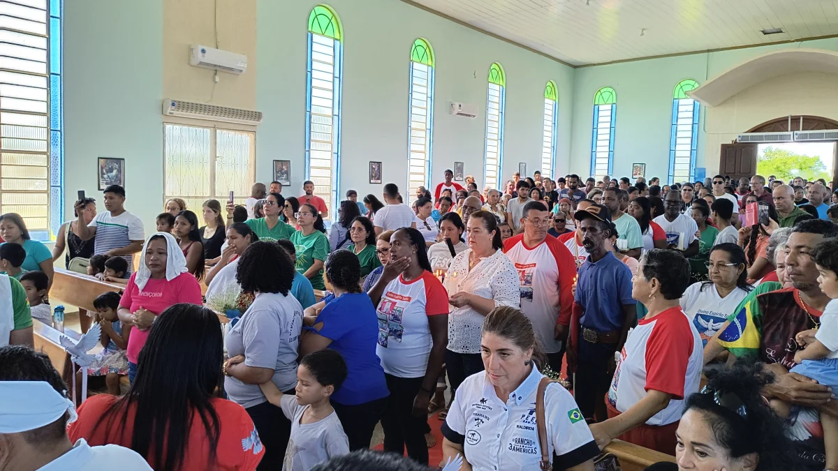 Aconteceu neste domingo 25 de maio, a chegada da Romaria e do Batelão do Divino Espírito Santo, do Vale do Guaporé, no município de Pimenteiras do Oeste/RO; São 45 dias de romarias por 37 comunidades tradicionais do Rio Guaporé, entre o Brasil e Bolívia até chegar a seu destino final que será na localidade de Cafetal na Bolívia que será uma grande festa nos dias 04,05,06, 07 e 08 de junho de 2025.