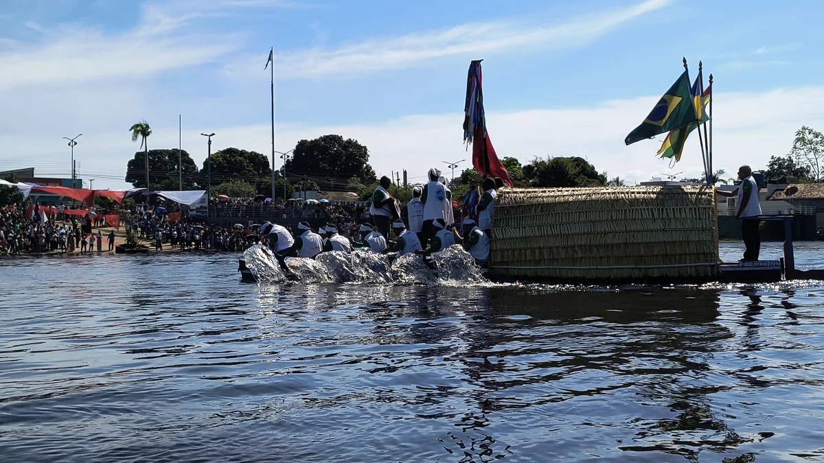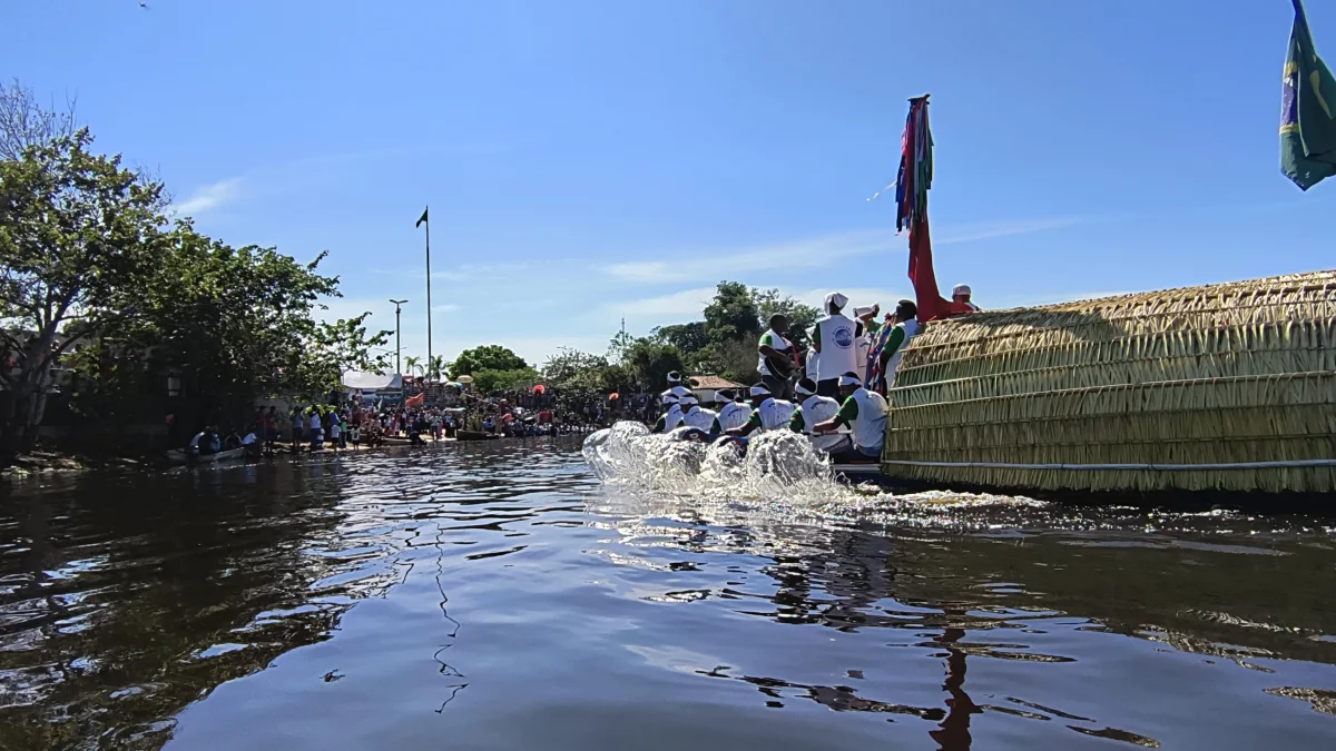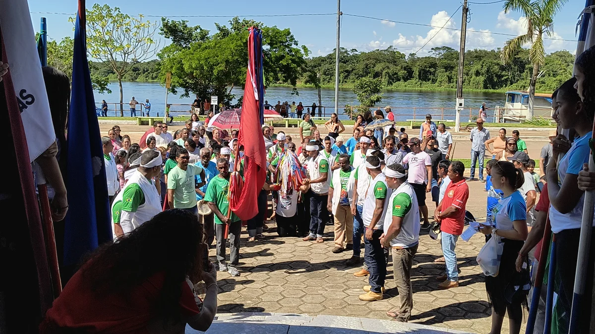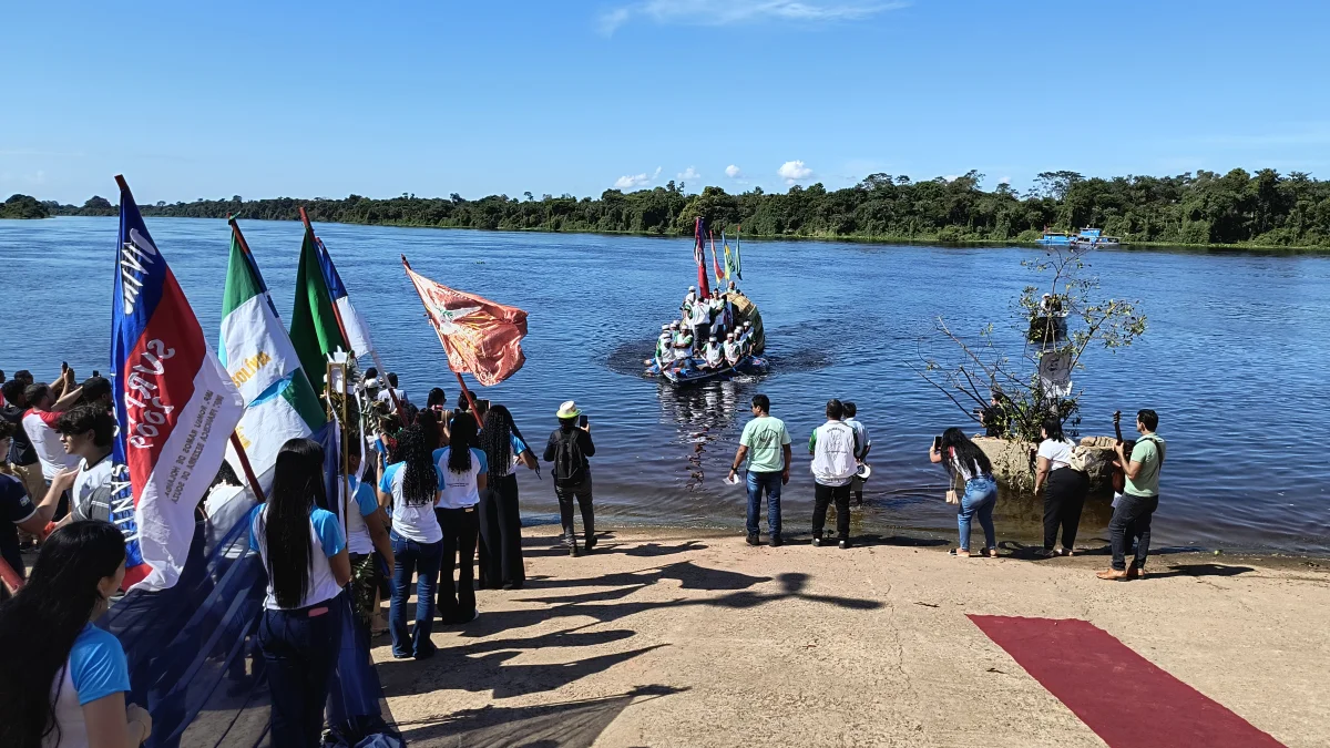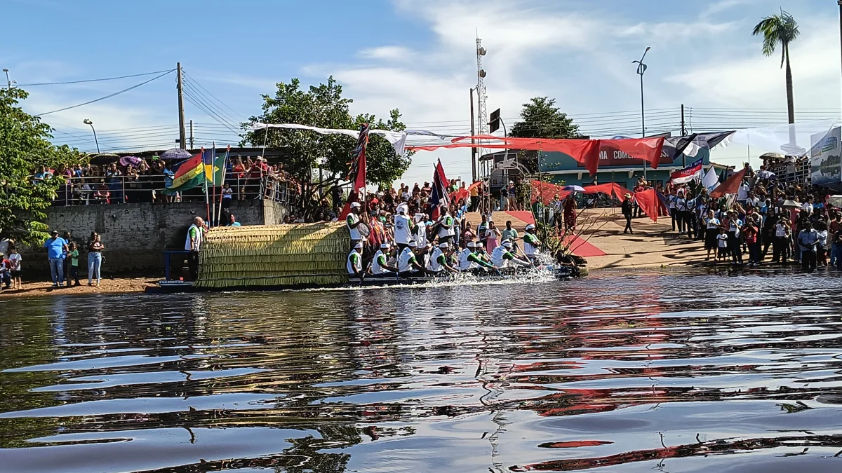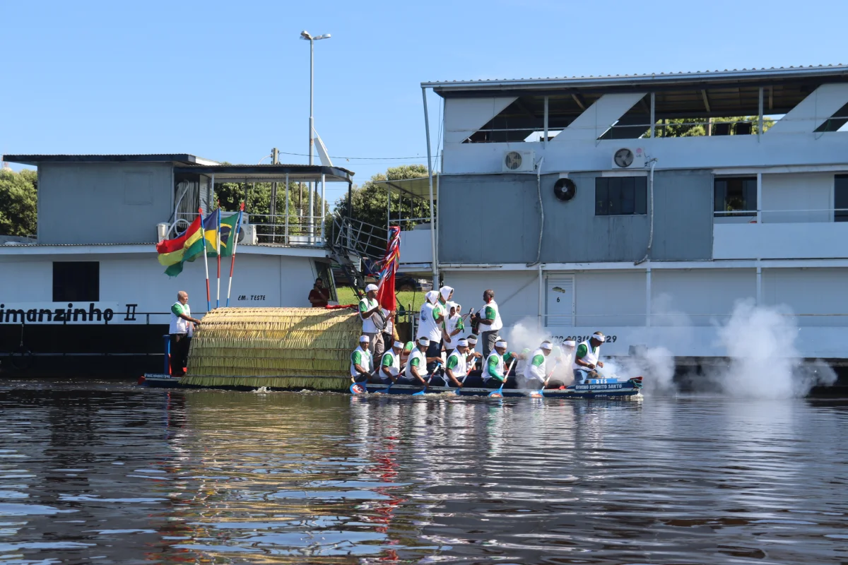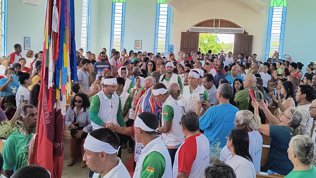 Aconteceu neste domingo 25 de maio, a chegada da Romaria e do Batelão do Divino Espírito Santo, do Vale do Guaporé, no município de Pimenteiras do Oeste/RO; São 45 dias de romarias por 37 comunidades tradicionais do Rio Guaporé, entre o Brasil e Bolívia até chegar a seu destino final que será na localidade de Cafetal na Bolívia que será uma grande festa nos dias 04,05,06, 07 e 08 de junho de 2025.