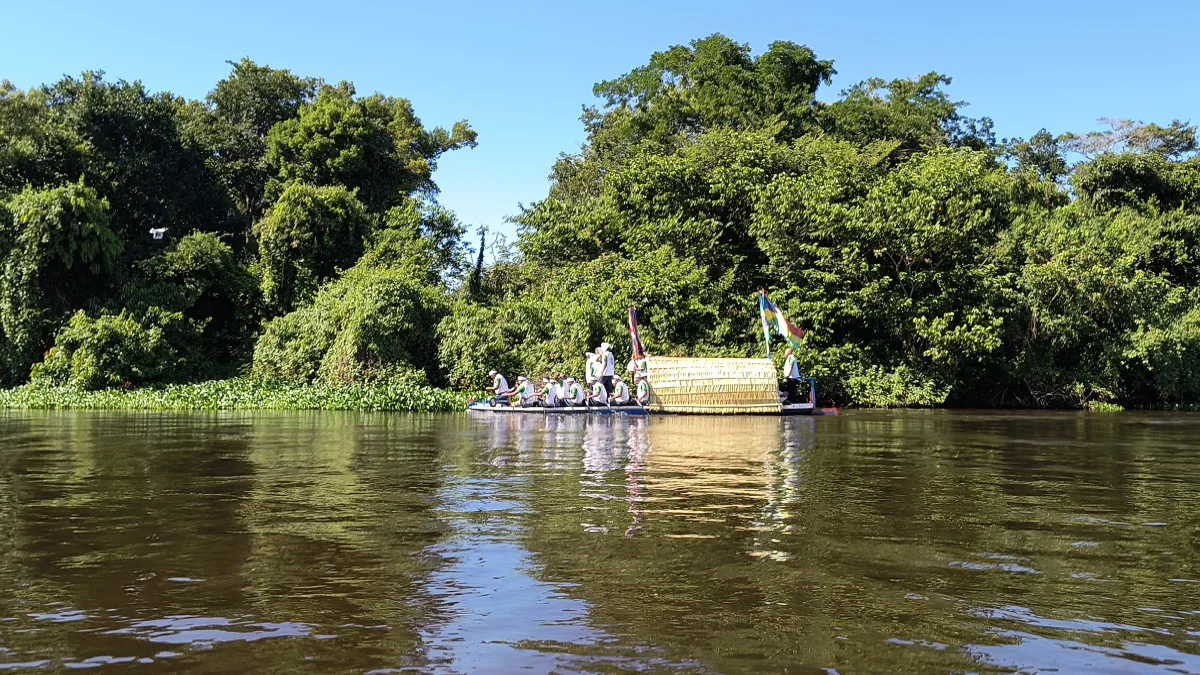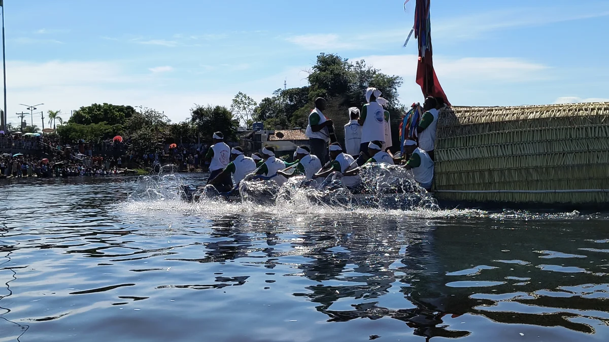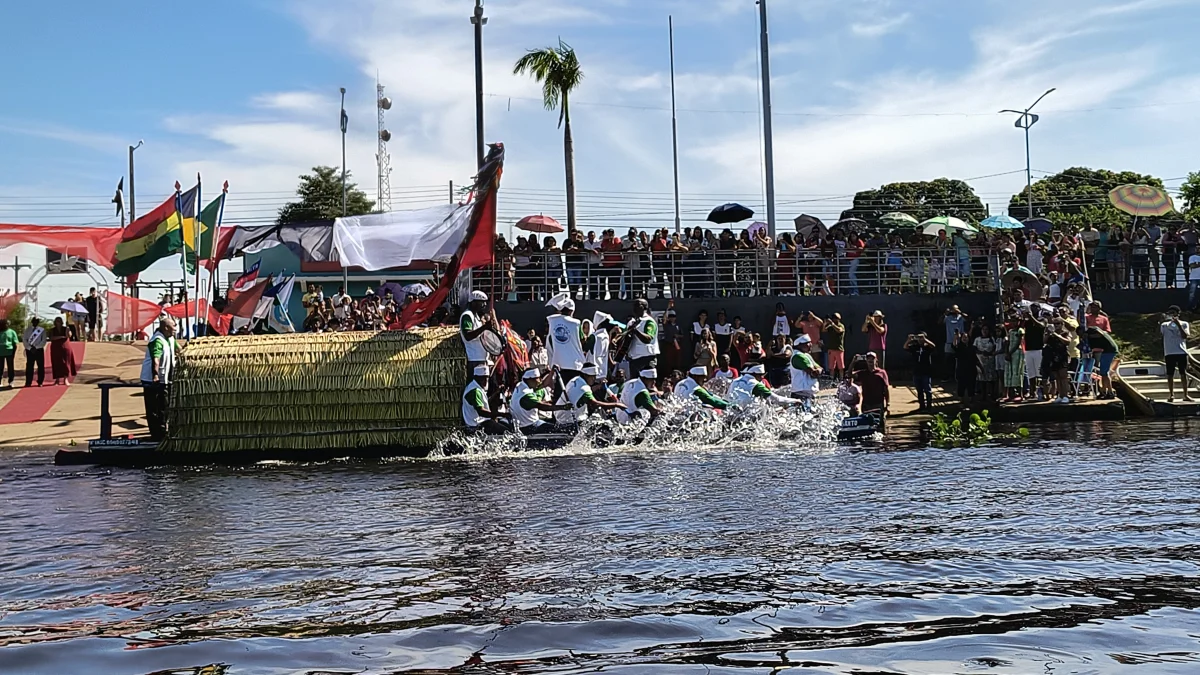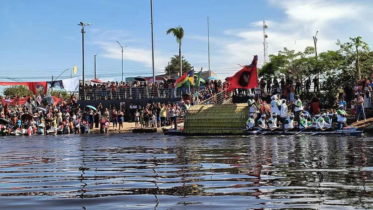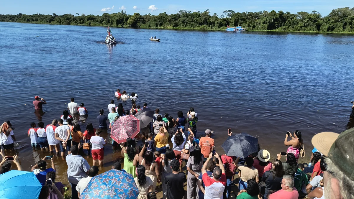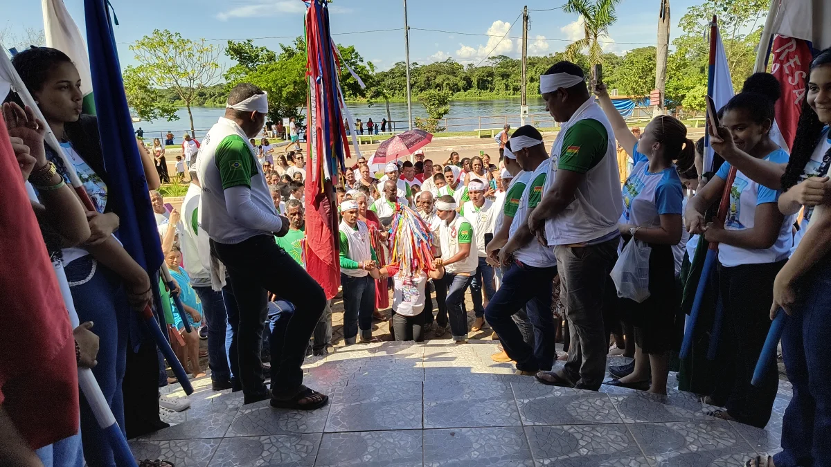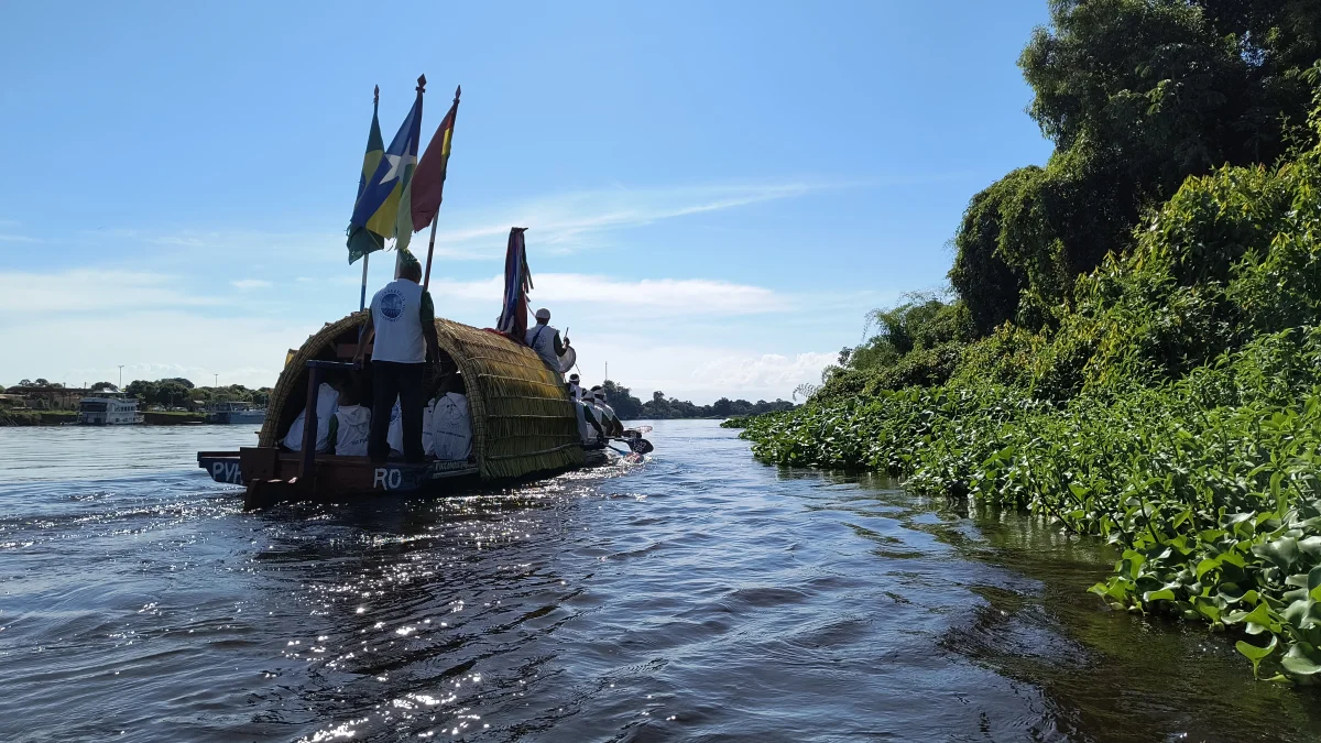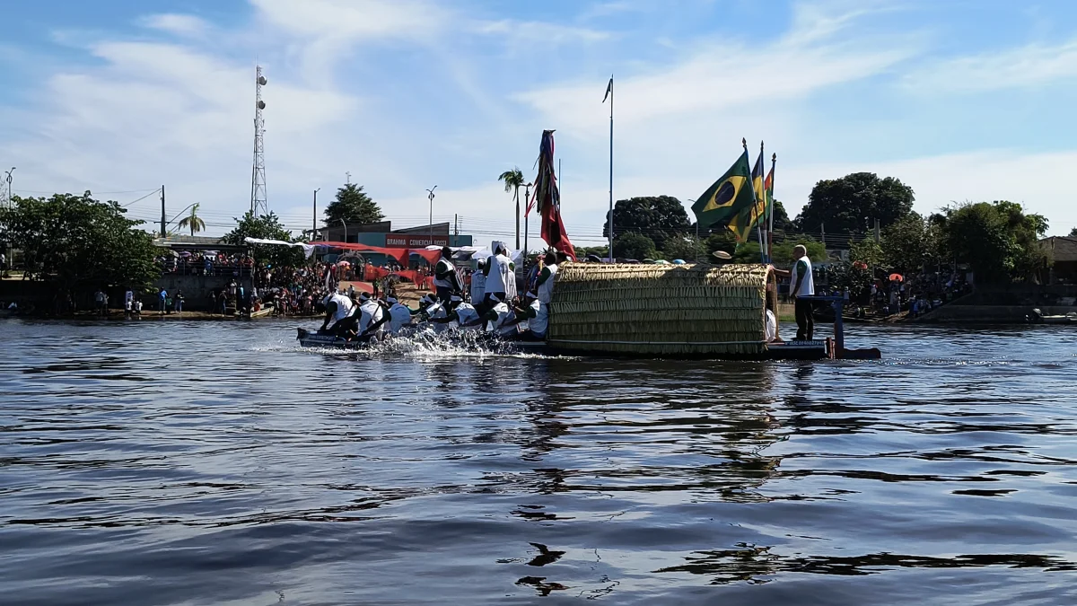 Aconteceu neste domingo 25 de maio, a chegada da Romaria e do Batelão do Divino Espírito Santo, do Vale do Guaporé, no município de Pimenteiras do Oeste/RO; São 45 dias de romarias por 37 comunidades tradicionais do Rio Guaporé, entre o Brasil e Bolívia até chegar a seu destino final que será na localidade de Cafetal na Bolívia que será uma grande festa nos dias 04,05,06, 07 e 08 de junho de 2025.