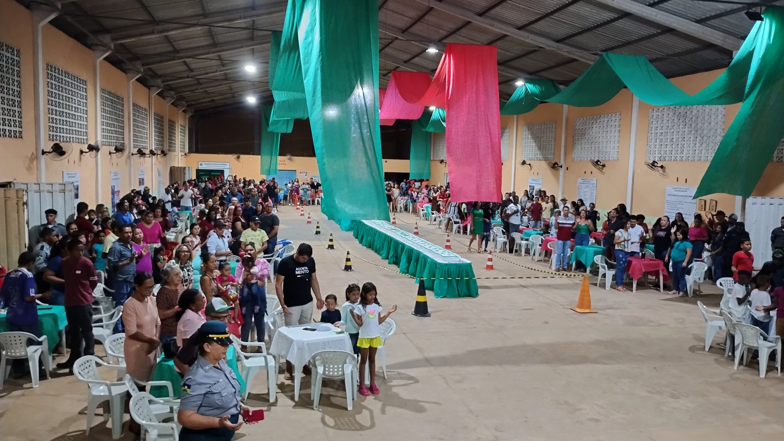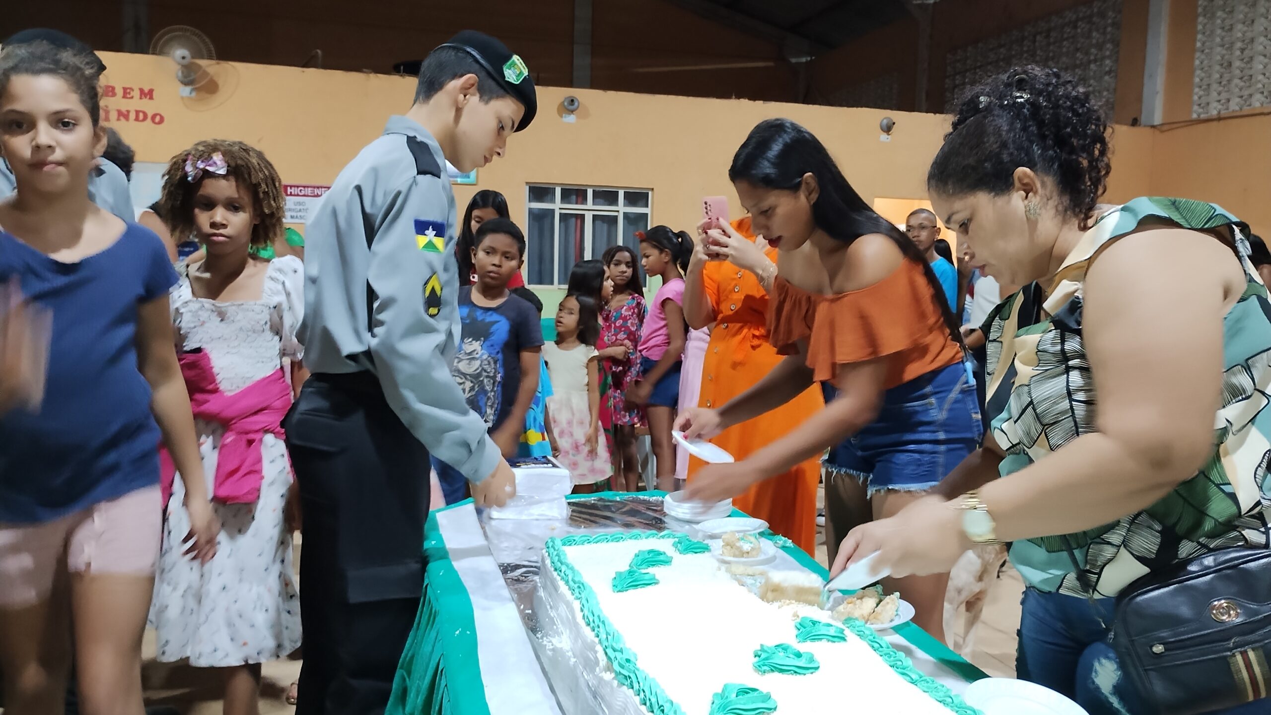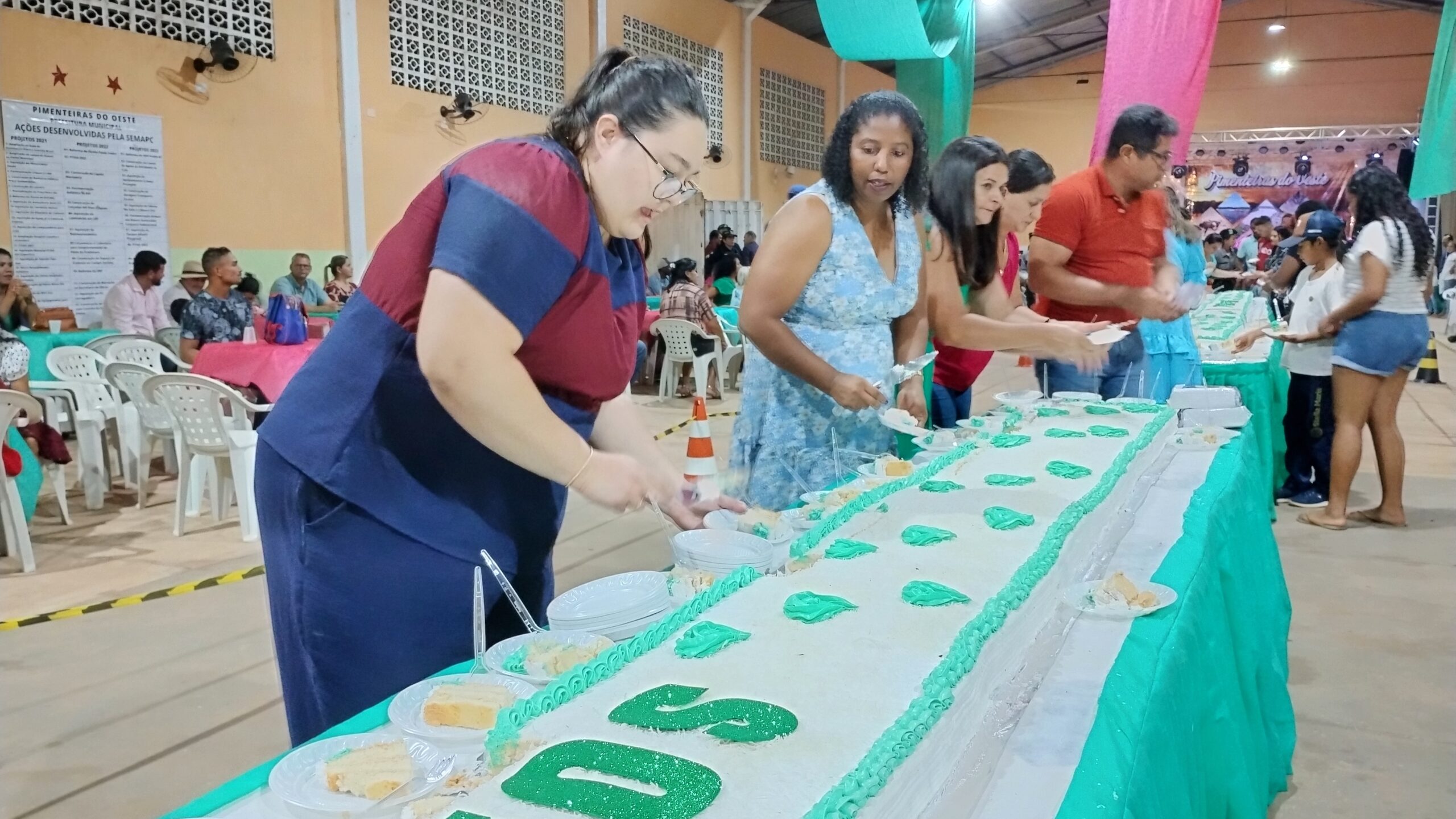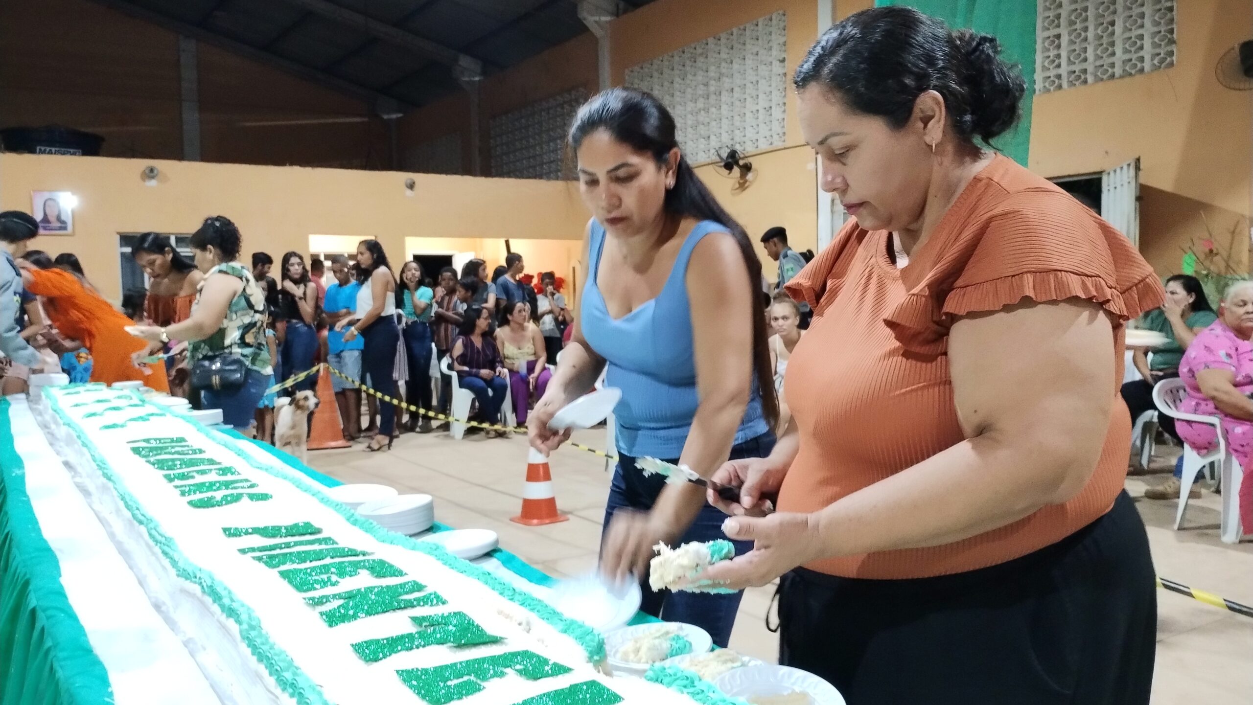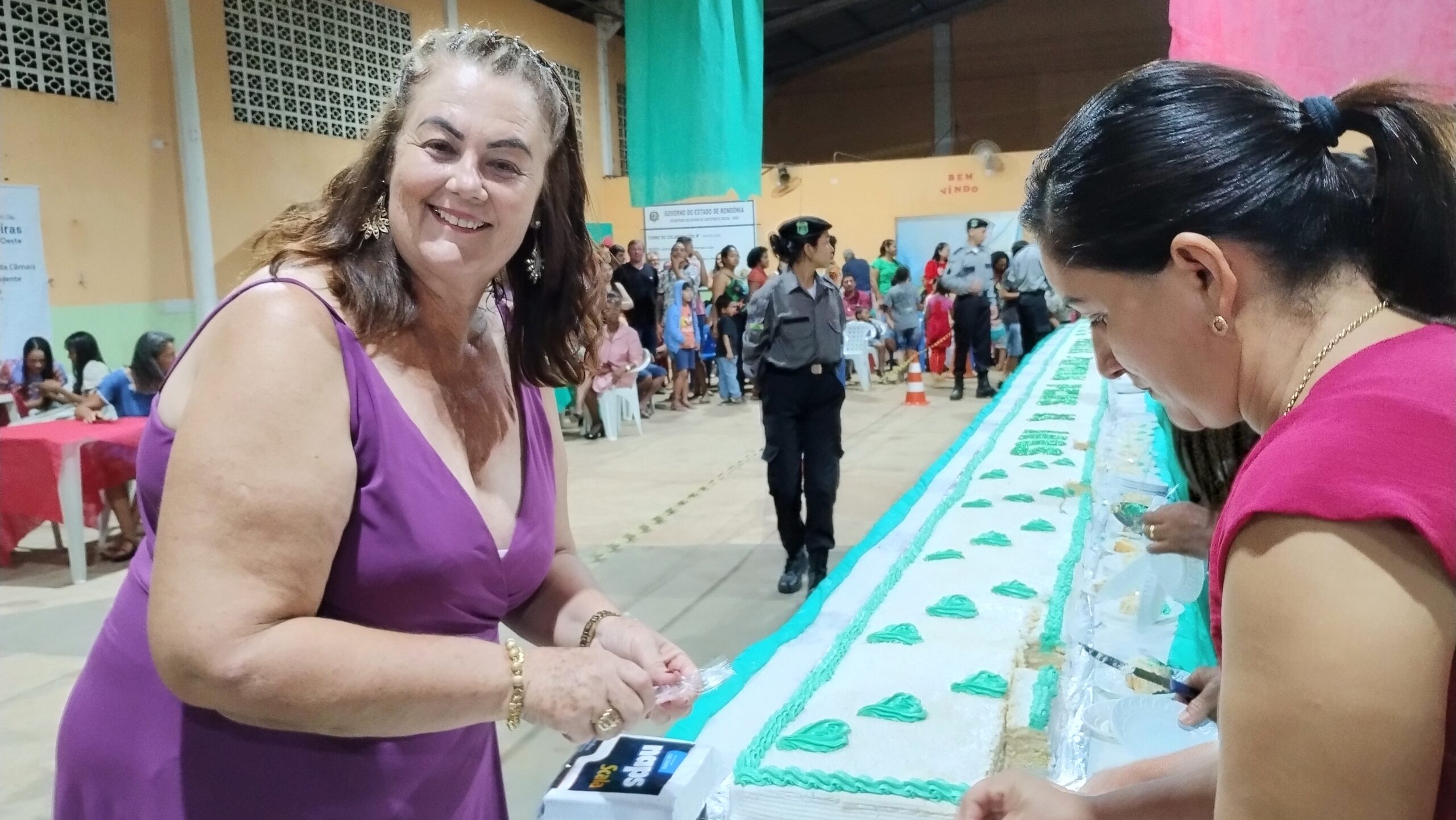 O tradicional corte de bolo marcou a comemoração nesta segunda-feira (27), um dia antes da data do dia 28, que se comemora a emancipação política administrativa de Pimenteiras do Oeste. O bolo de 28 metros foi distribuído entre as centenas de famílias que se fizeram presentes no Centro de Eventos do Município, e juntos cantaram os parabéns à Pimenteiras pelo seu aniversário. “A festa foi toda pensada para a população. Nada melhor que comemorar esse aniversário com a nossa população sendo atendida e feliz”, declarou a Prefeita Valéria.
