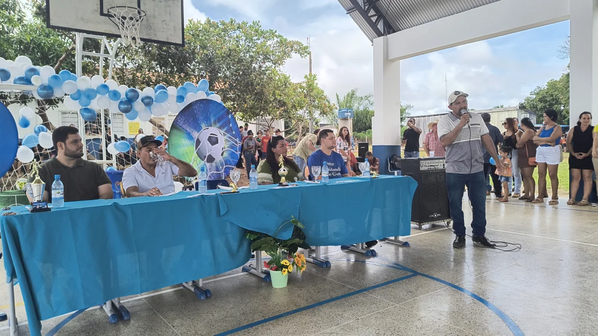 A escola, ganha esse importante quadra poliesportiva que vai beneficiar diretamente aos alunos da referida escola, além de servir para eventos da própria comunidade, um investimento de R$ 400,00 mil, oriundo de emenda parlamentar do ex-senador Acir Gurgacz, e R$ 70 mil de contra partida do município, a pedido do vereador Gaguinho.