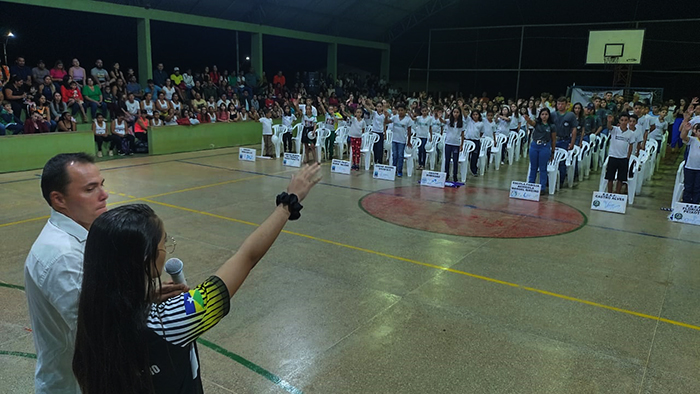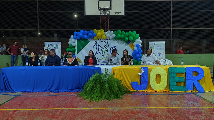O vice-presidente da Câmara Municipal de Vereadores de Cerejeiras/RO; vereador Erivelton Navarro (UB), esteve participando da cerimônia de abertura dos Jogos Escolares de Rondônia-JOER, fase municipal 2023, realizada na noite desta terça-feira (30/05), na quadra esportiva da Escola Estadual Tancredo Neves. Na solenidade foram realizados desfiles das delegações e apresentações de coreografia e ginástica rítmica e acrobática e uma aluna fez o juramento dos atletas.