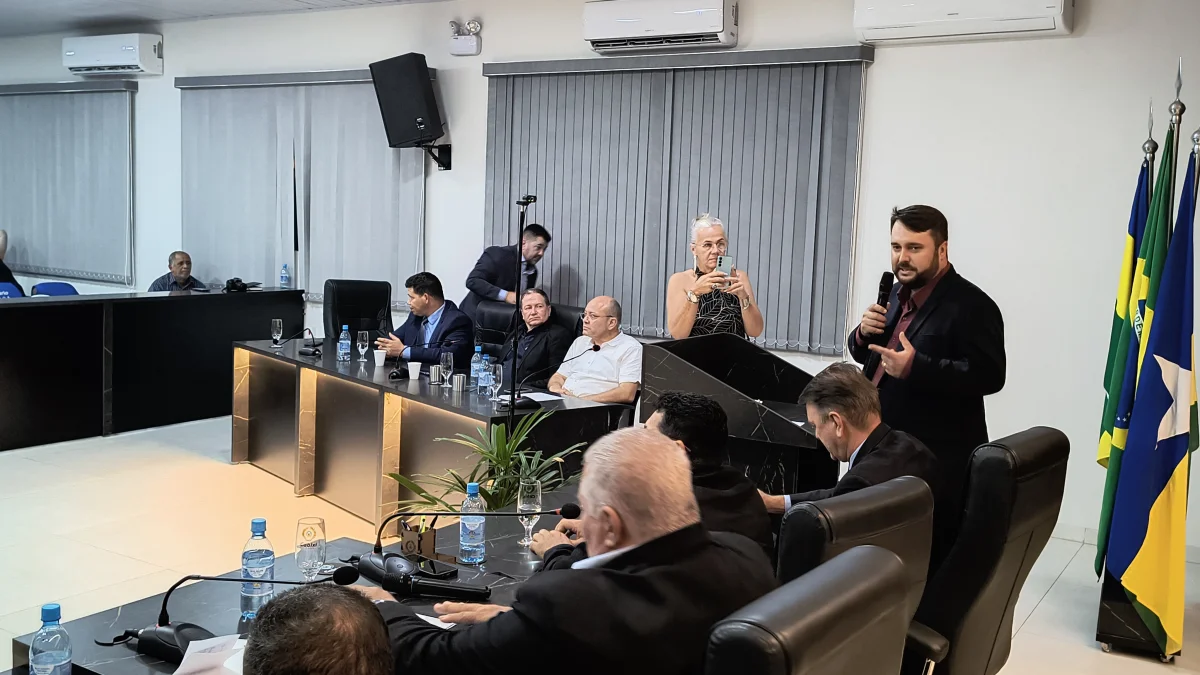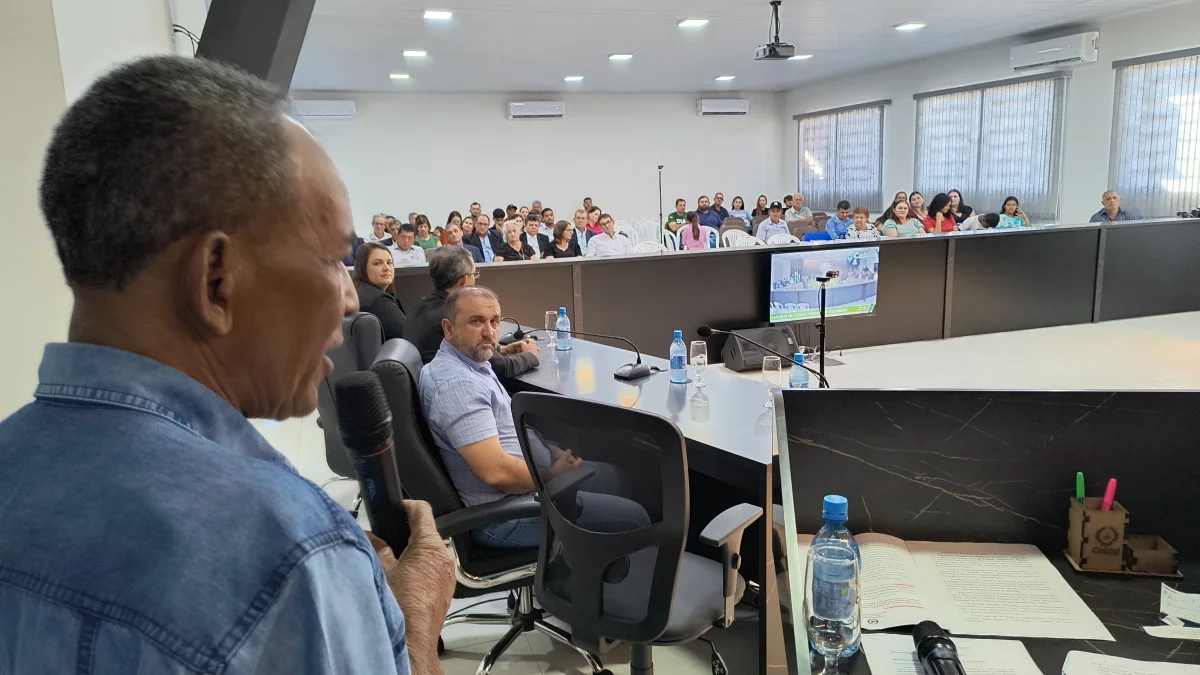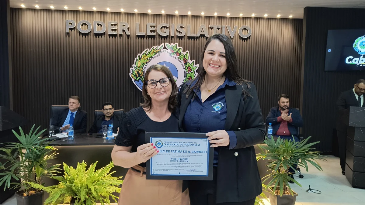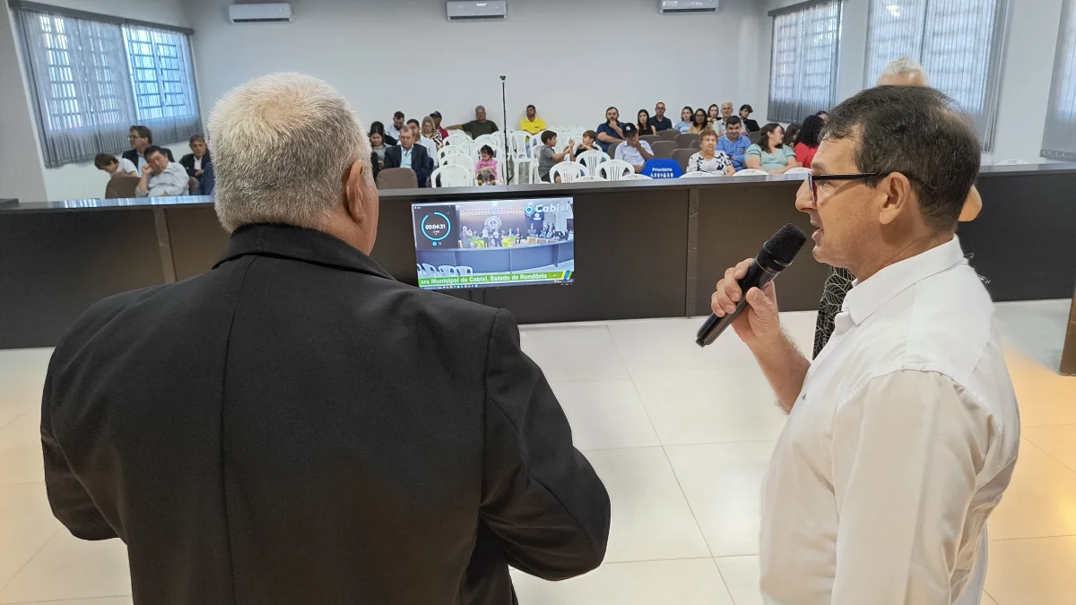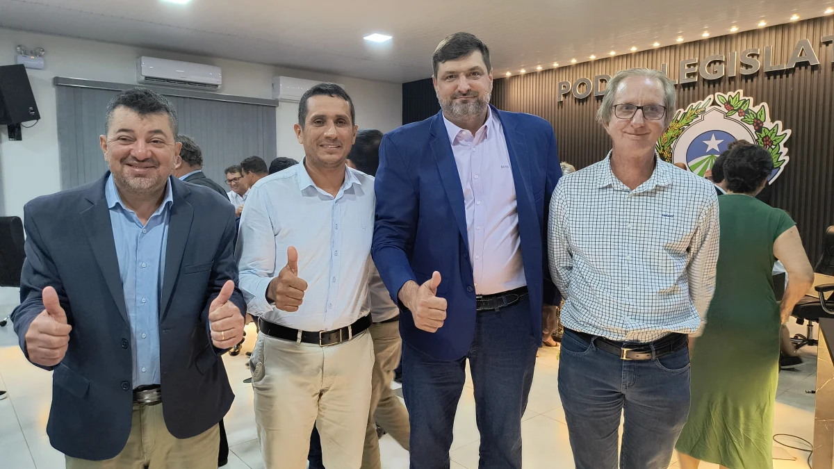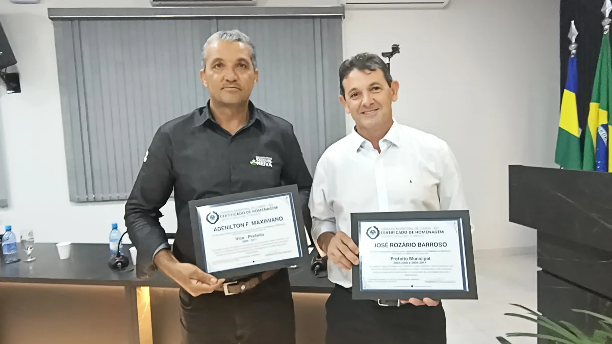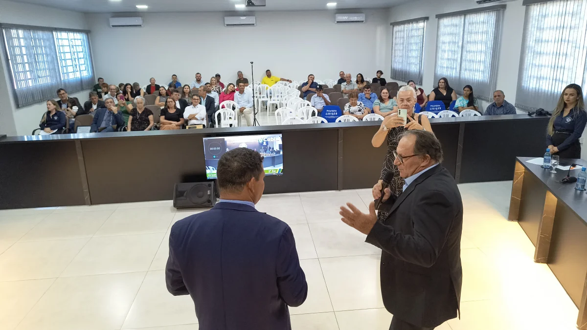 O presidente da Câmara de Vereadores do Município de Cabixi, Milton Antunes da Silva, concede homenagem ao empresário Antônio José Gemelli. A homenagem reconhece sua contribuição para o desenvolvimento econômico e social da cidade, especialmente pela geração de empregos e investimentos locais.