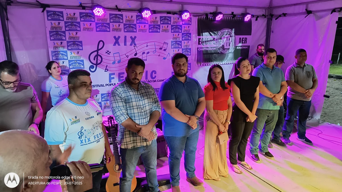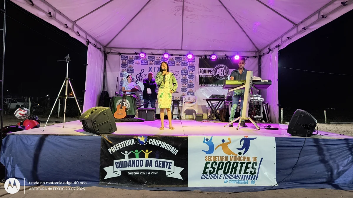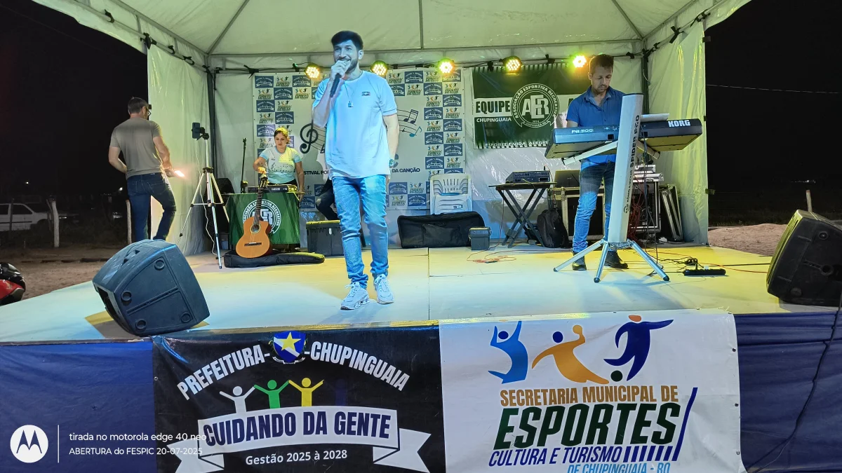 O município de Chupinguaia, localizado no Cone Sul, do Estado de Rondônia, foi palco da abertura oficial da primeira etapa do festival popular de interpretação da canção – FESPIC, o maior festival de música do município e Estado. O FESPIC é organizado pela prefeitura de Chupinguaia através da Secretaria Municipal de Esportes, Cultura e Turismo (SEMECTUR), recebeu nesta noite se domingo 20 de julho de 2025, as primeiras apresentações da primeira etapa classificatória, mais um evento do calendário oficial do município.