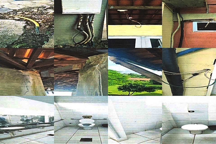 “Em todas as salas de aula constatamos a ocorrência de condutores de energia totalmente expostos, sem o devido condutor, o que coloca em risco a integridade física de todos que ali circula”, indica.