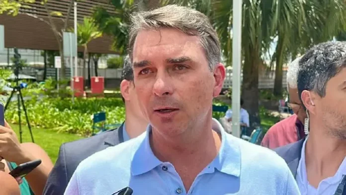 Ao comentar o estado de saúde do pai, Flávio afirmou que o ex-presidente está internado em razão de complicações da facada sofrida durante a campanha presidencial de 2018.