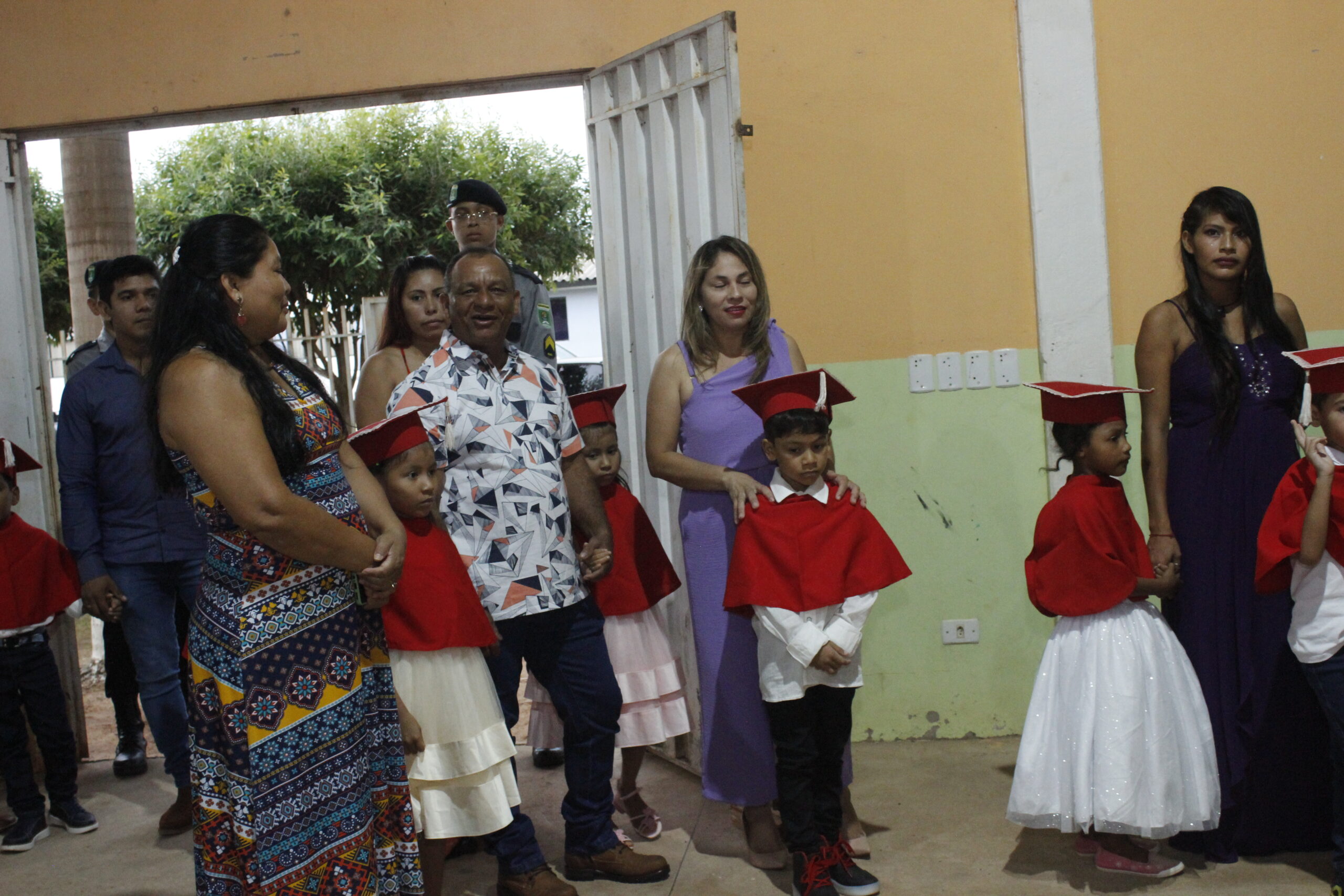 A Prefeita do Município de Pimenteiras do Oeste/RO; Valéria Aparecida Marcelino Garcia (UB), acompanhada de seus secretários municipais, e do chefe de Gabinete Rodrigo Sordi, dos vereadores Irene Alves Almeida, Jesus Reginaldo, professores, comunidade e o professor e ex-prefeito João Miranda, prestigiando a formatura do Pré-II, da Escola Municipal de Ensino Infantil Mundo Mágico.